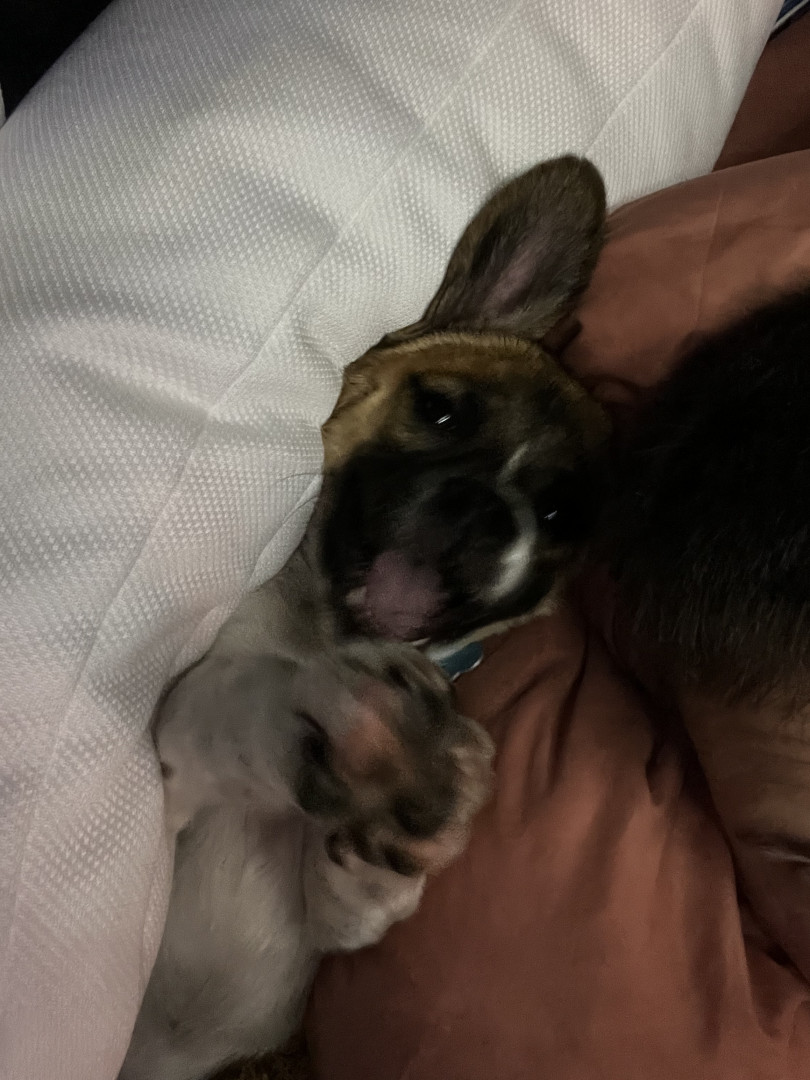 His ears flip flop, his left ear mostly will stay up while the other stays down, occasionally it will be his right ear that stays up, and it’s rare but sometimes they both fall, but not for long.