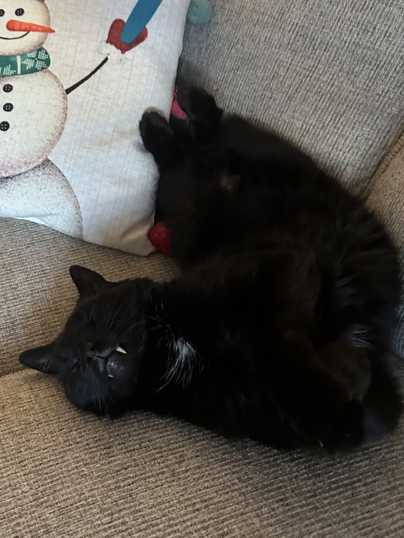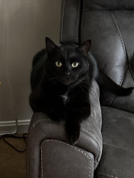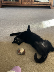 Typical scaredy-cat. Doesn’t like to be held, but curls up next to me all the time. Purr's loudly and paws me gently when he wants atten