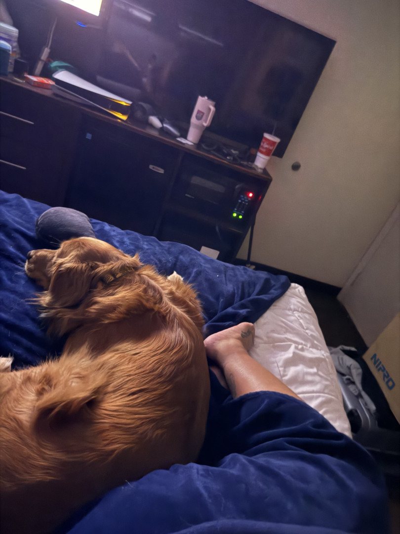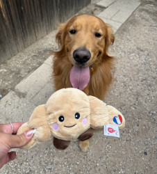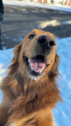 Happy, playful, silly, loves to play fetch, high energy, wants to be pet all the time. Just an overall loving floofball