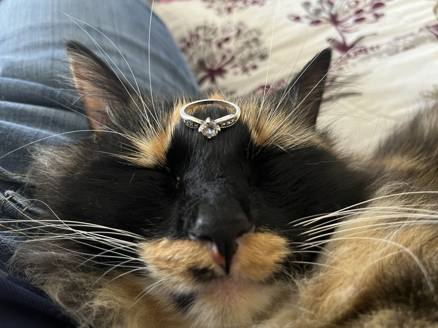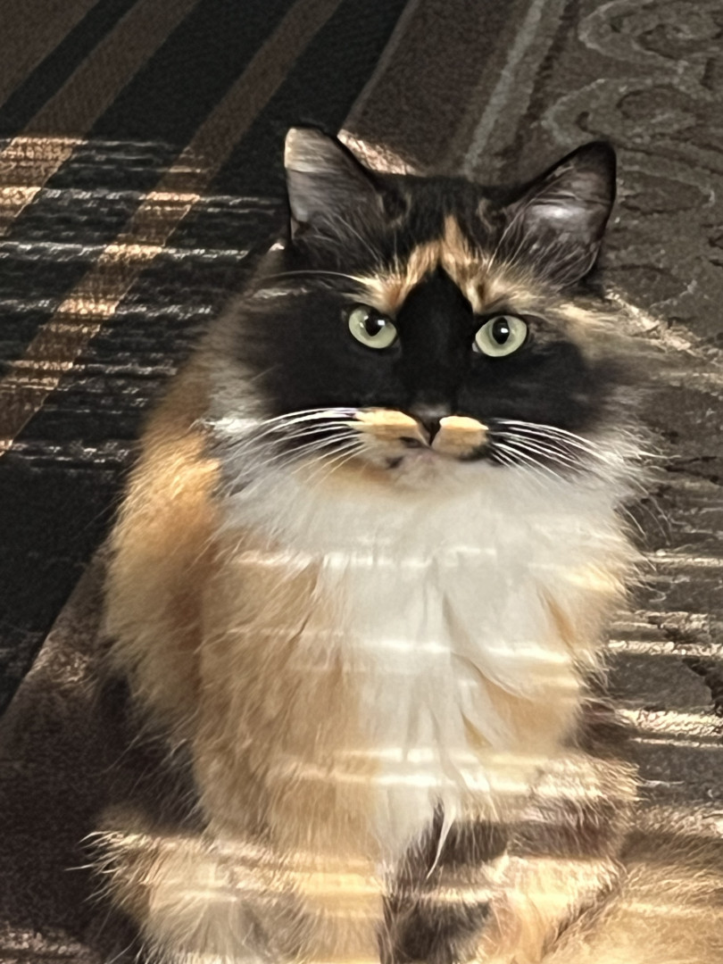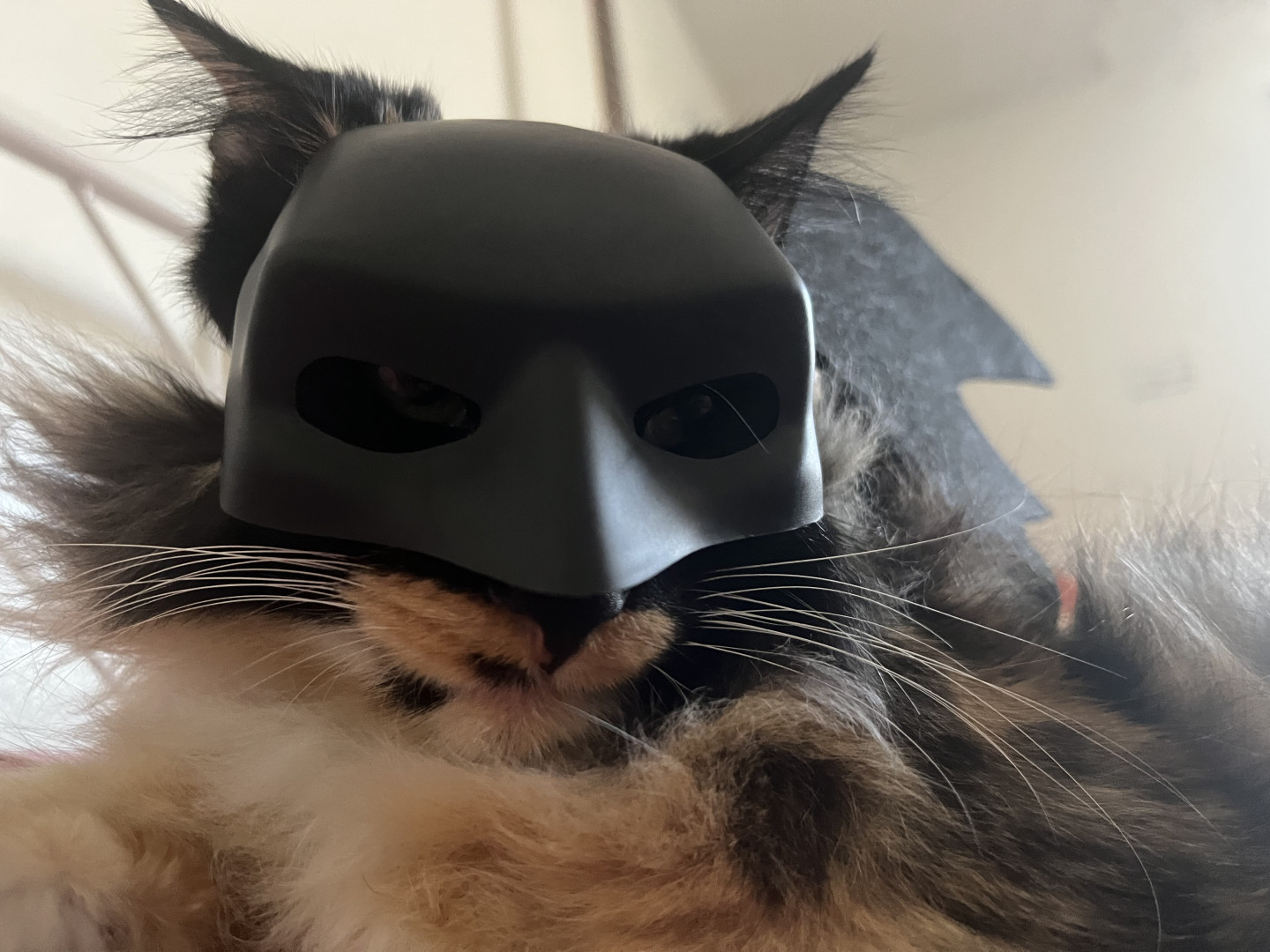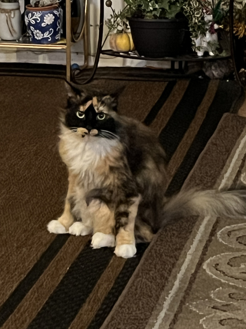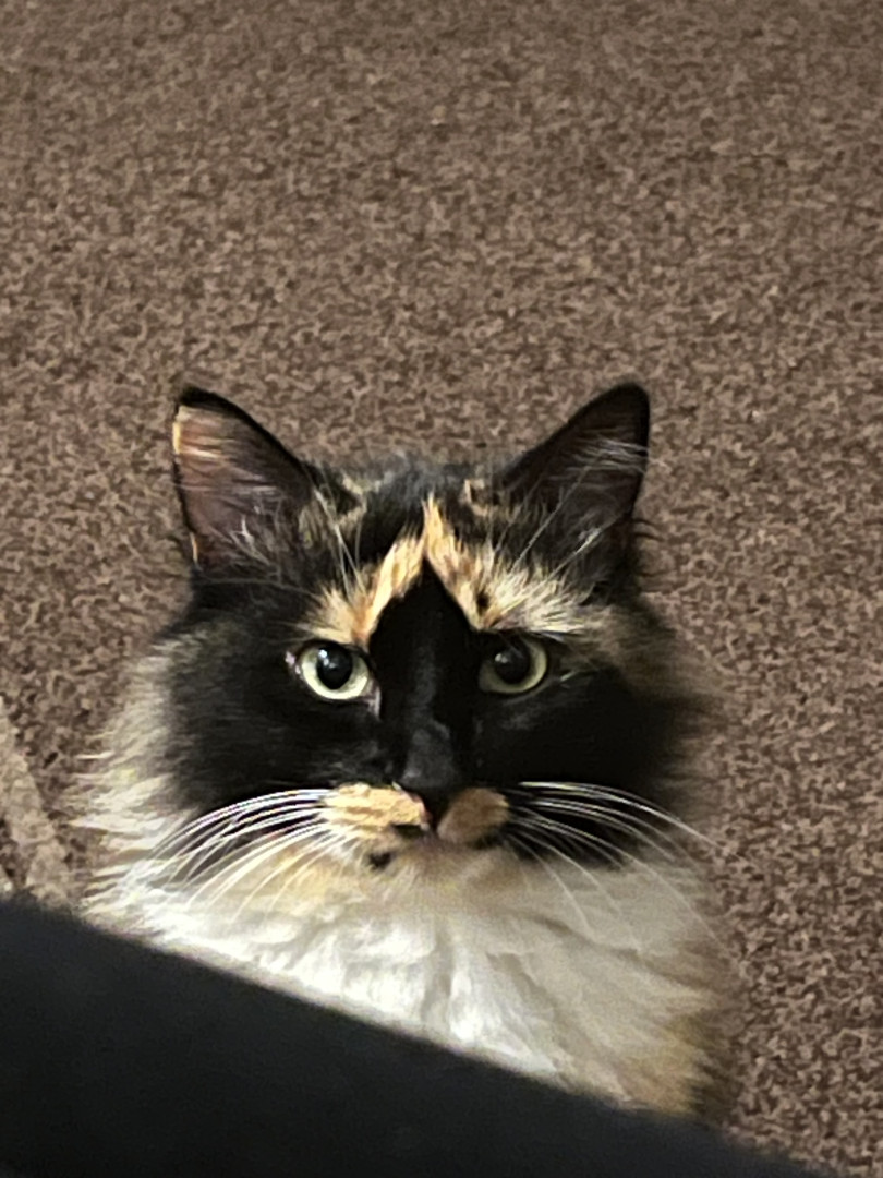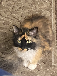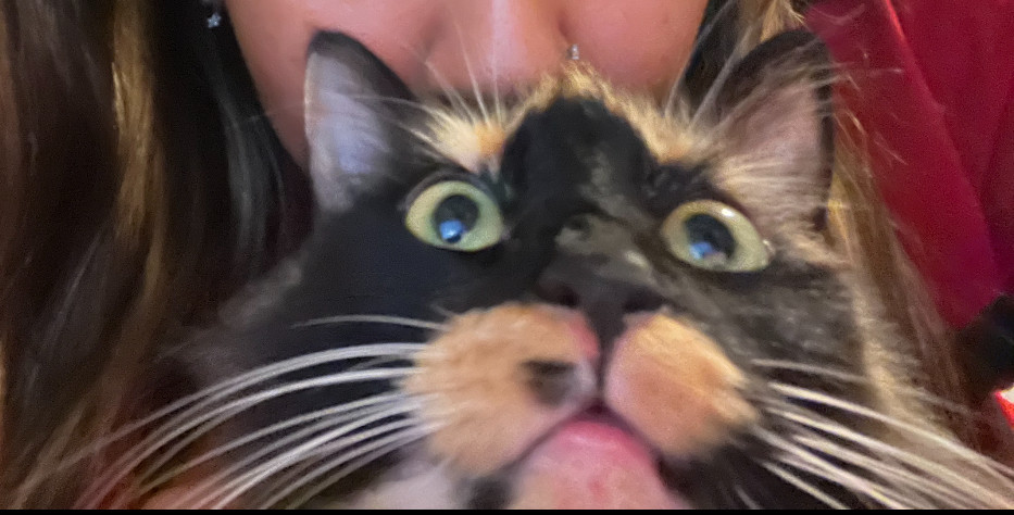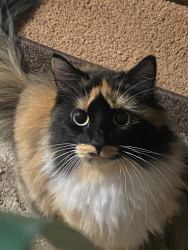 Her markings. Got her at the SB Humane Shelter. Her face mask makes her look like a raccoon and owl when her eyes dilate.
