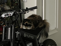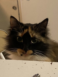 She is very shy, lovable and very cuddly. Looks like an owl half the time. She can spin and fetch for treats