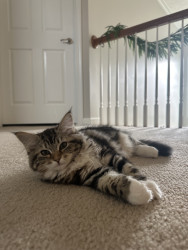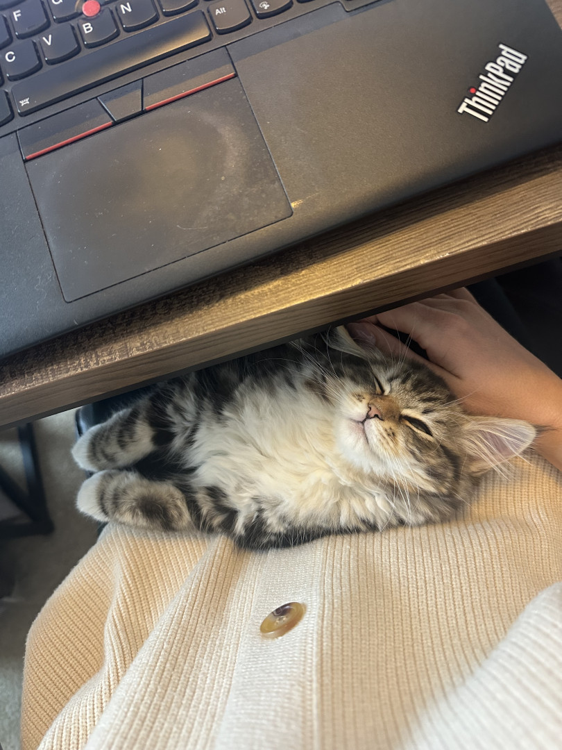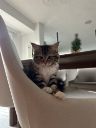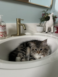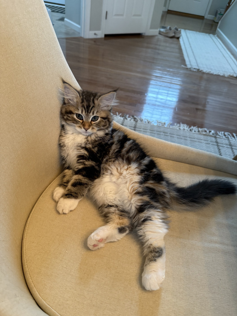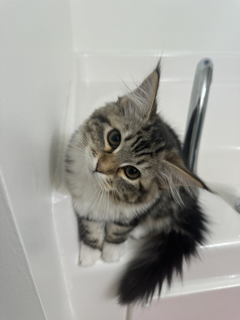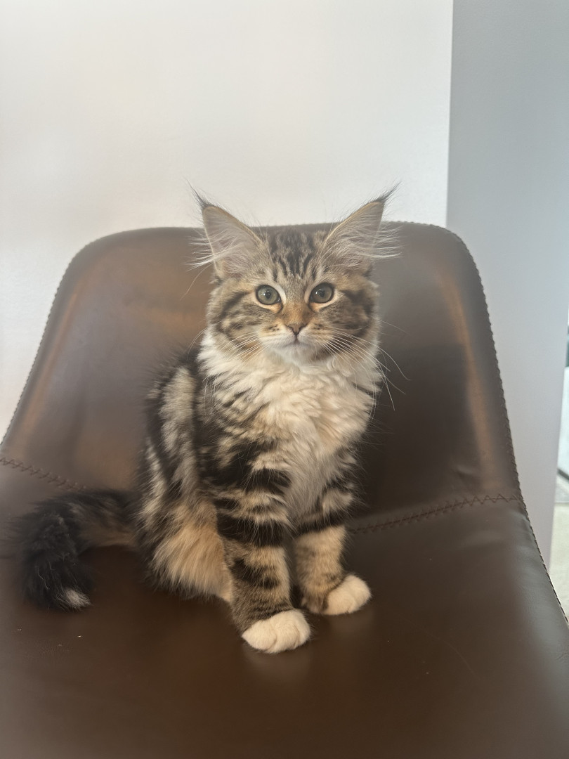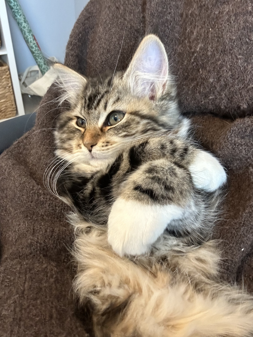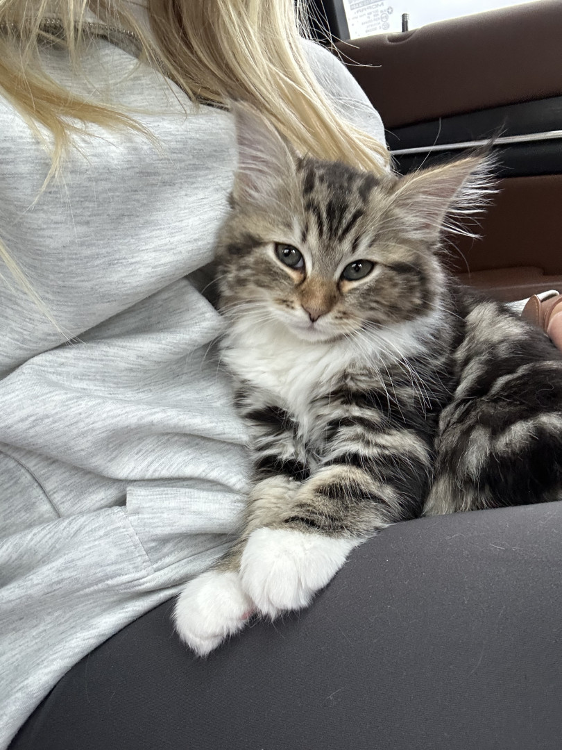 She is a super social siberian kitten! She loves meeting new people. She also loves to play and has the cutest rawr!