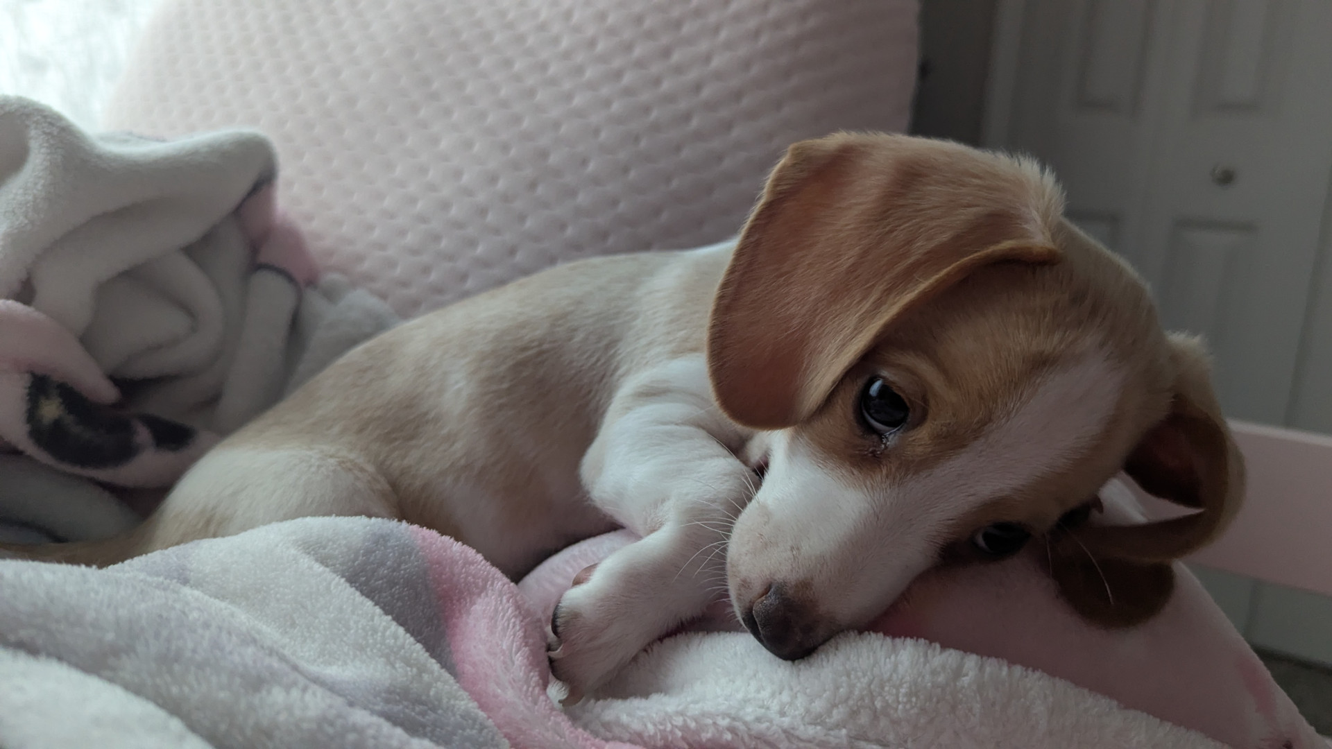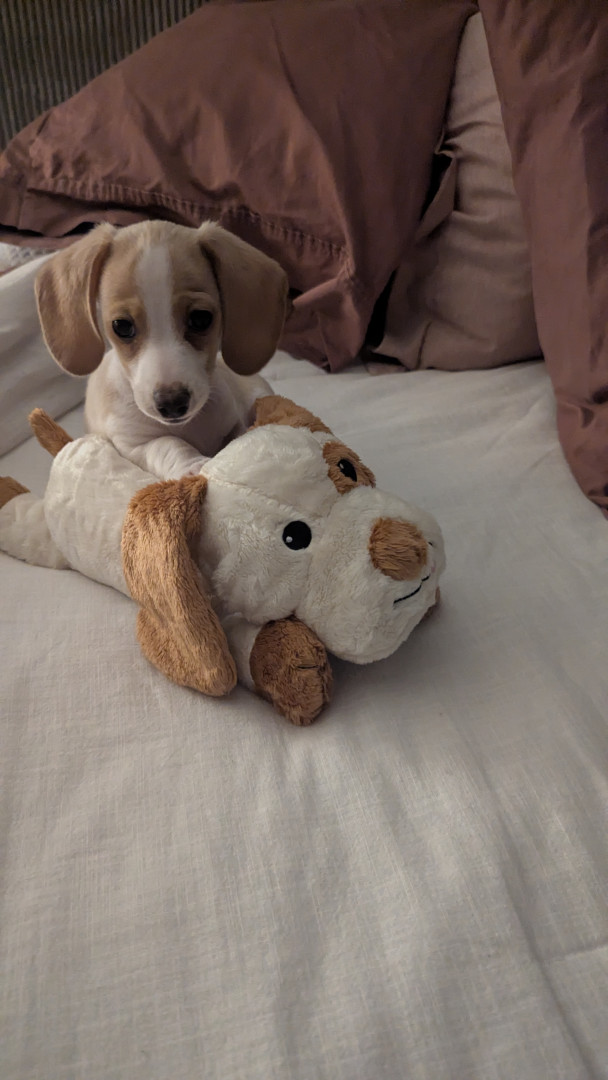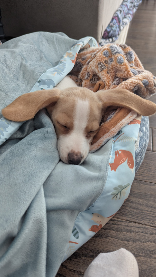 Coney dog is a 9 week old, delicious, miniature Daschund. His favorite place to be is wrapped up and topped with cuddles and kisses! ðŸŒ