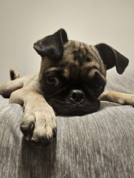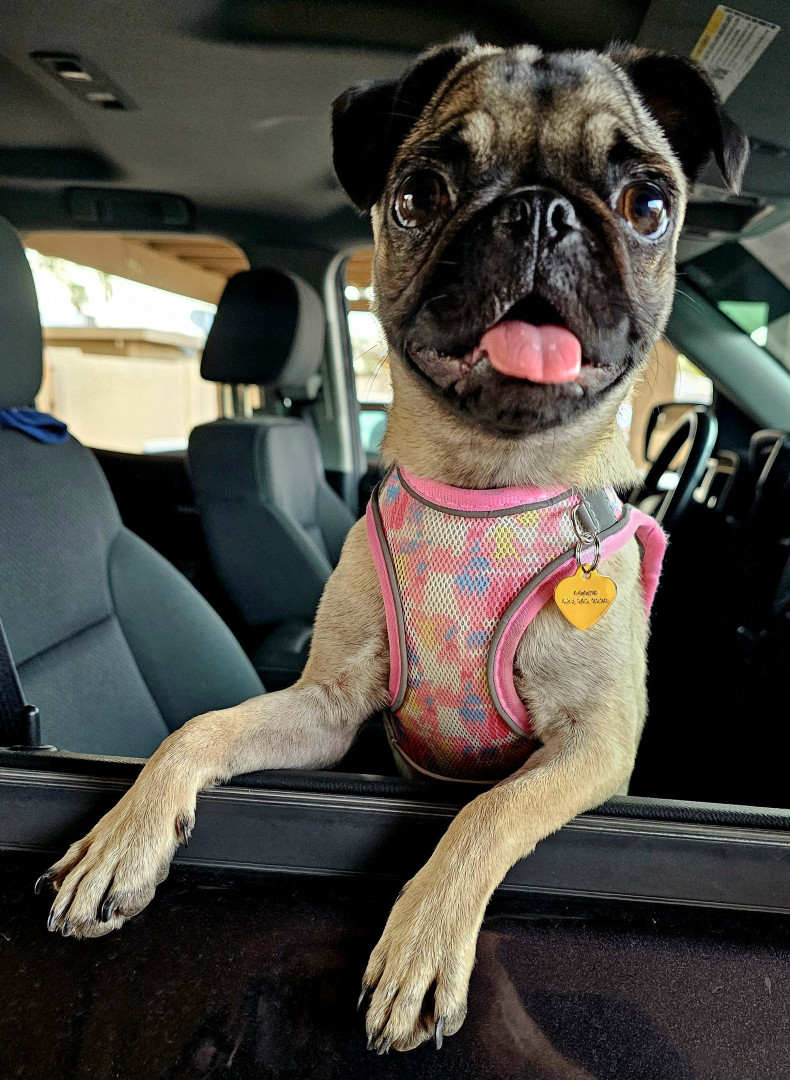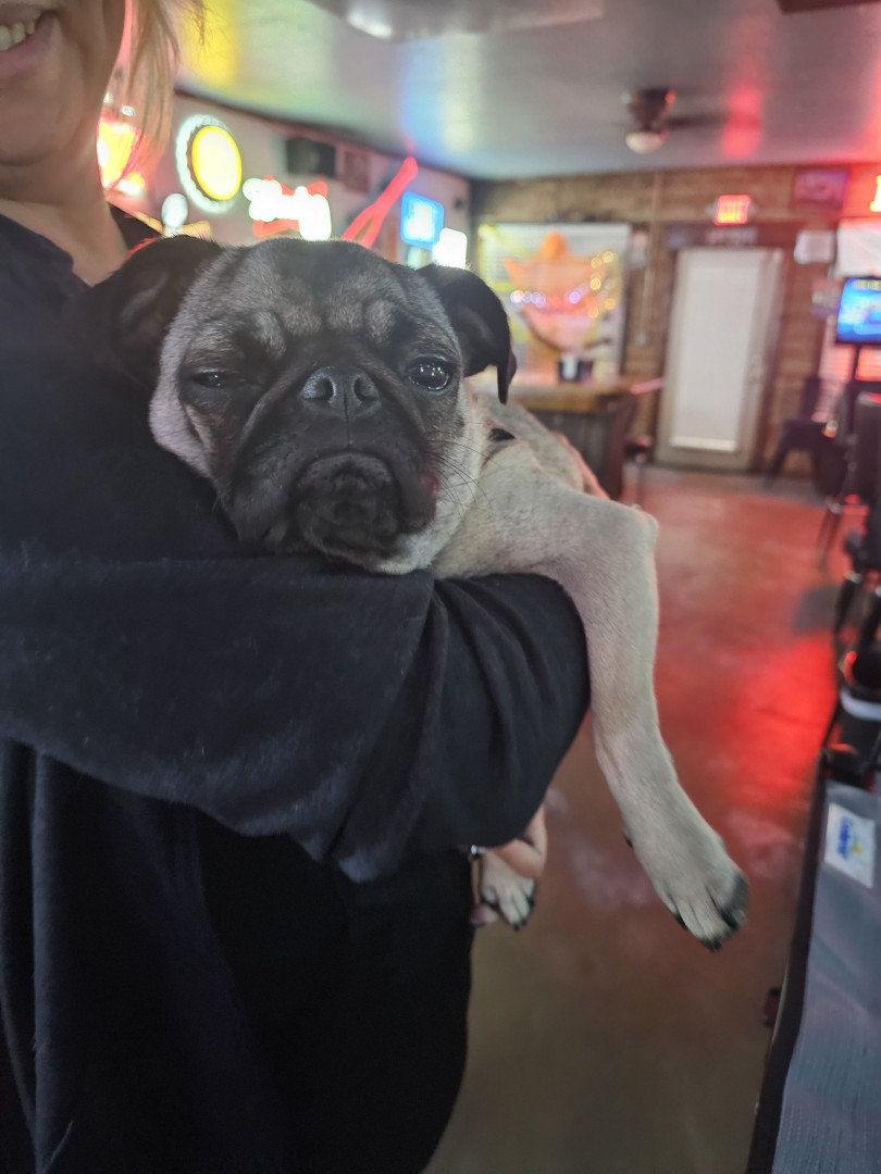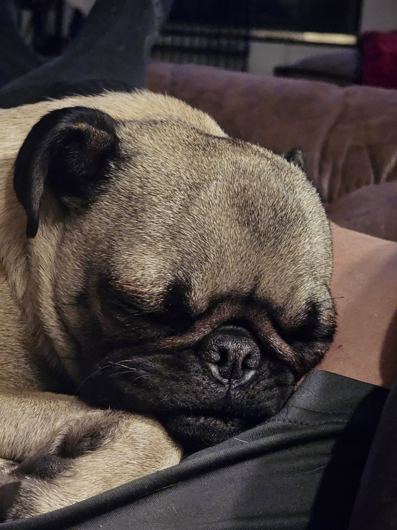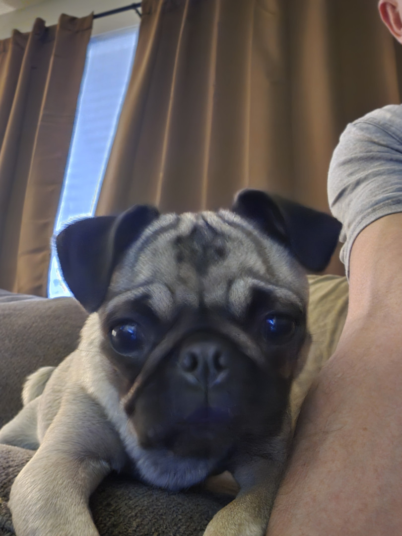 As a professional vocal artist, she specializes in 'The Pug Scream' whenever a cheese wrapper crinkles or she goes through a door (new doors mean new adventures!). She’s got a curly tail, a permanent side-eye, and the sweetest soul.