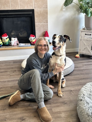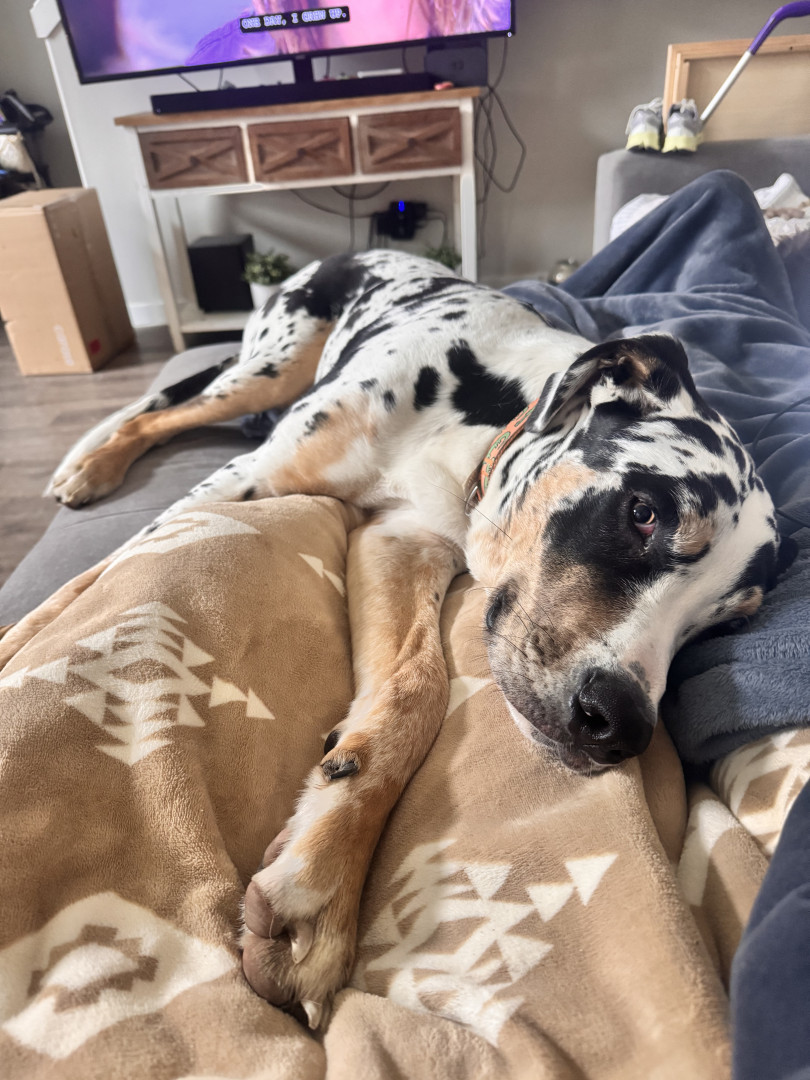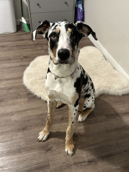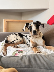 Cooper is a 9 month old playful Dane mix. He loves to play keep away and cuddling is one of his very favorite things!