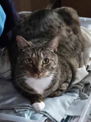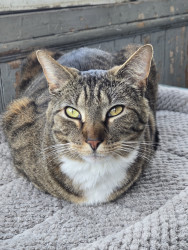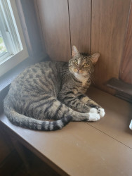 Cooper is a 2 year old domestic short hair. He loves to cuddle with people, play with his toys, and likes belly rubs.