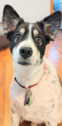Cooper is half Australian Shepherd and half Husky. He loves being outside, going for walks, and snow.