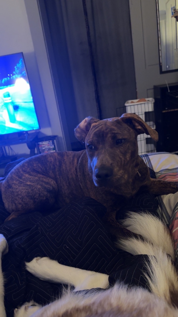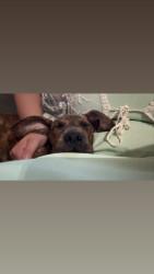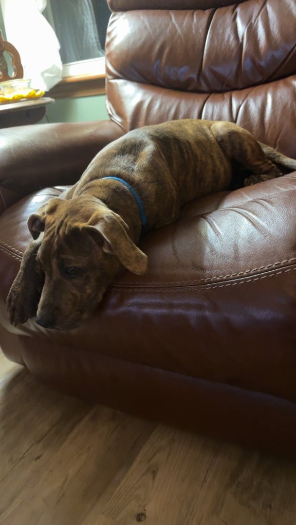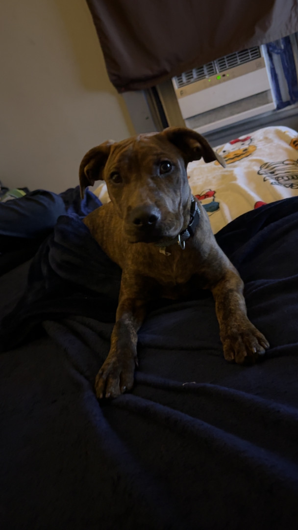 Cooper is very adorable, he is very lovable, very playful, and really goofy. He was the easiest puppy I’ve ever trained and his Brindle color makes him really unique!