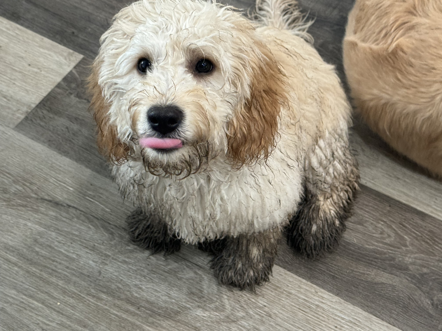 Cooper is a Mini Golden Doodle.