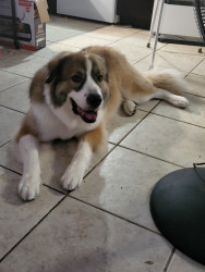 Great pyrenees and German shepherd mix 3 years old loves toys and pig ears