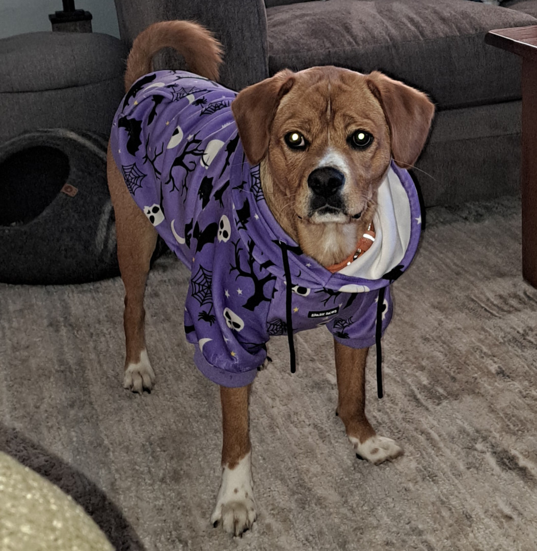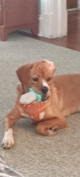 Learn MoreCopper loves a soft and squeaky toy anytime, but favors a yummy bully stick and biscuits, and on special occasions, Bark Toot loops.