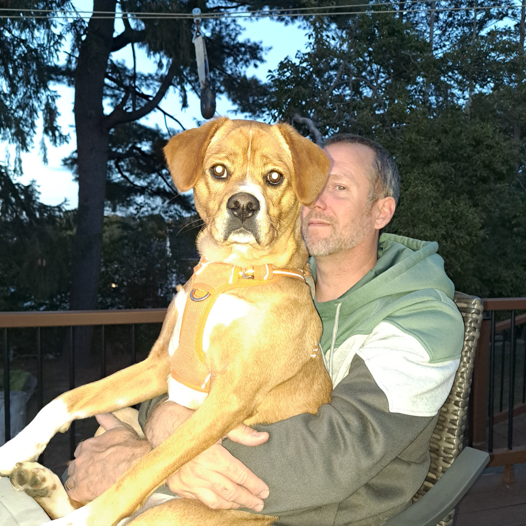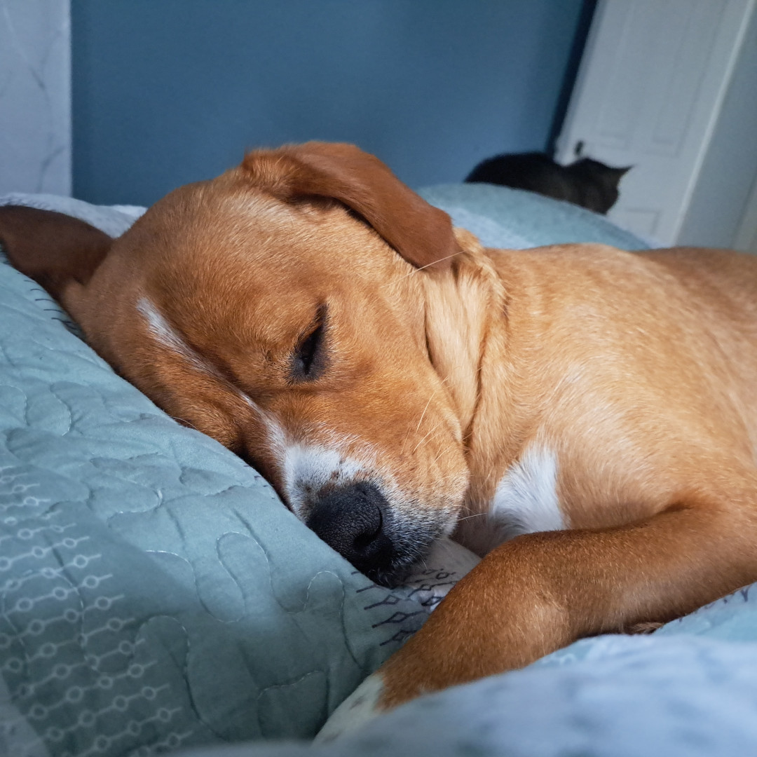 Copper has a stubborn streak determined to find a good time in any situation. While he enjoys a proper toy, give him a stick and some sunshine and he will get the party started. He is super inquisitive which always helps him to find happiness no matter how hard he has to look.