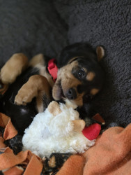 Hes a smart, cuddly 8week old puppy who loves everyone!