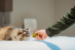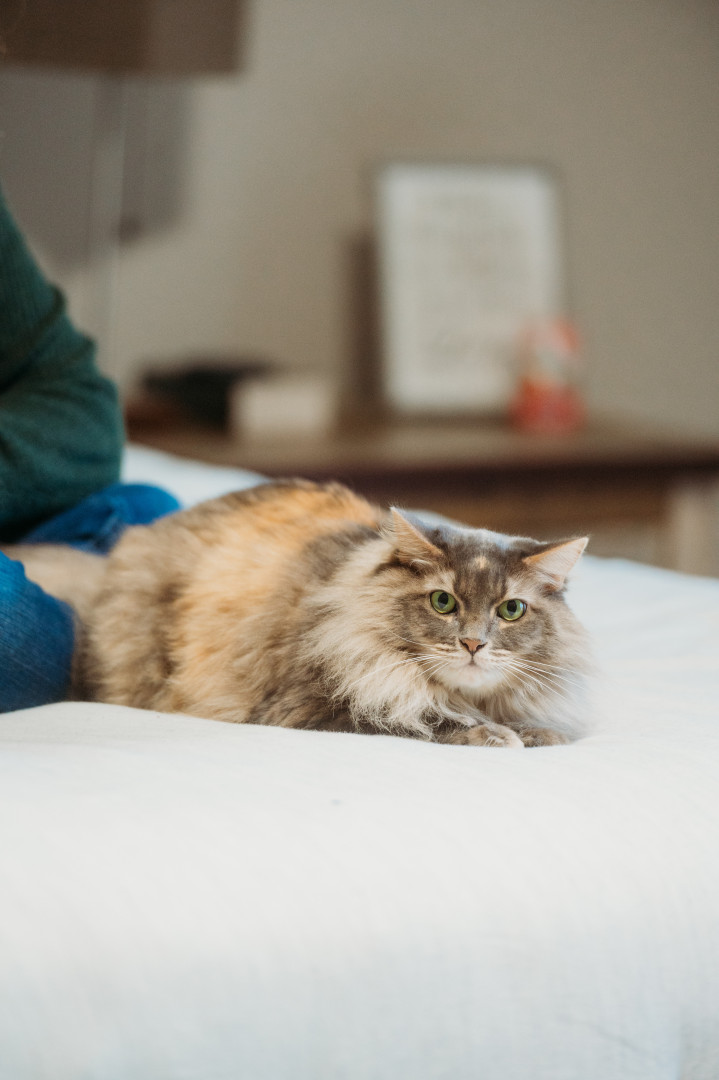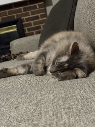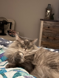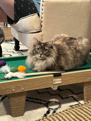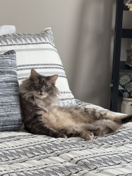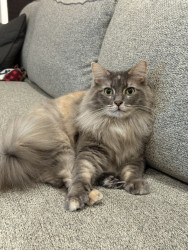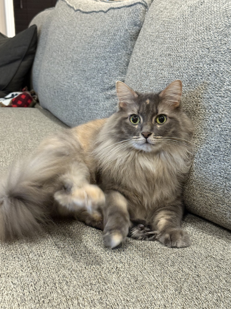 Cora is classified as a domestic long-hair, but her outrageously fluffy tail indicates some MainCoon ancestry!