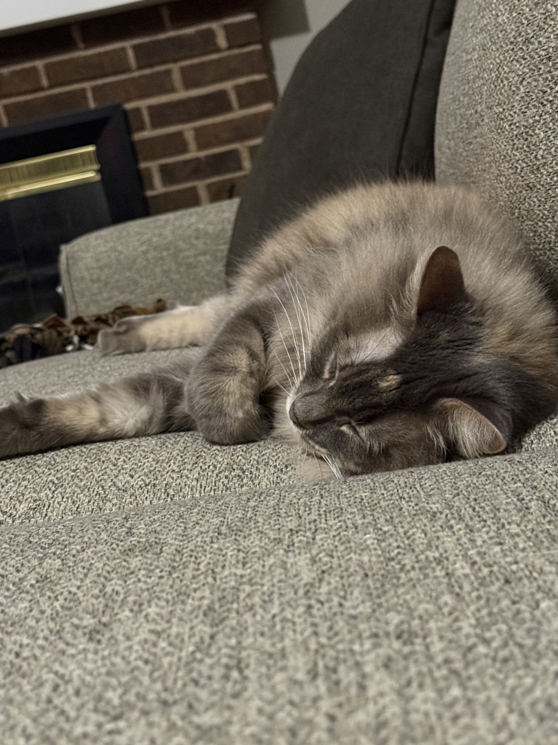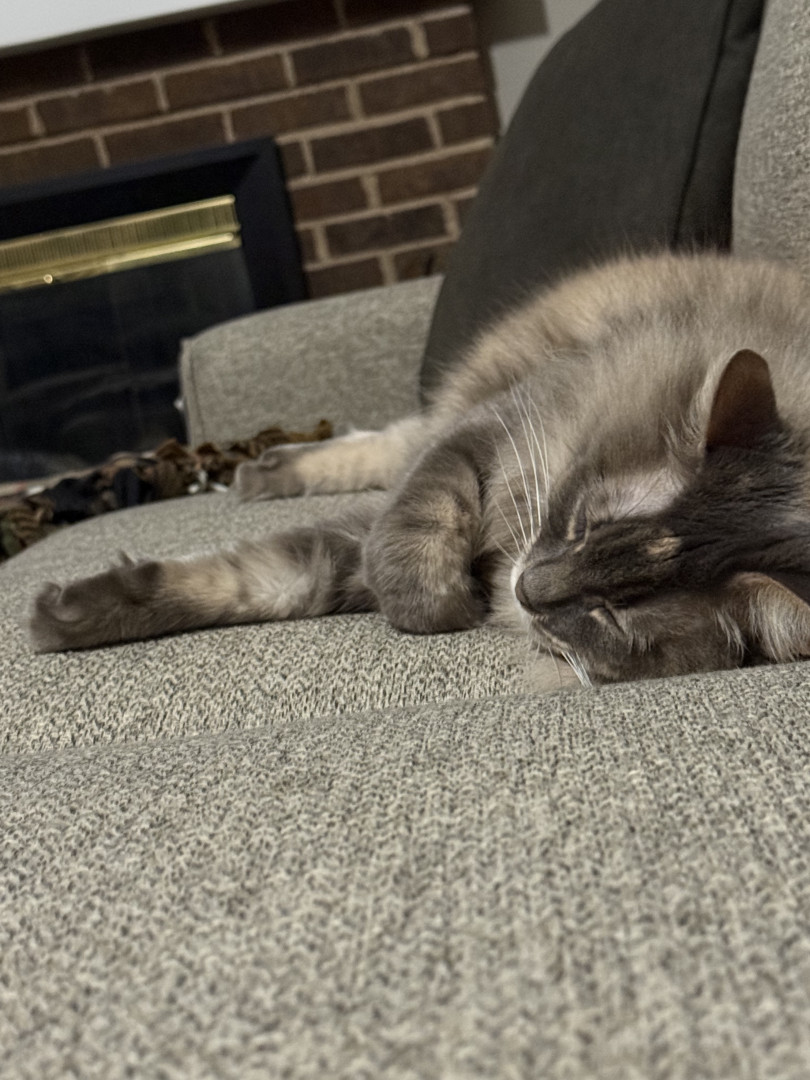 Cora loves to play in her tunnels, run sprints around the kitchen and living room, and napping in various spots around the house.