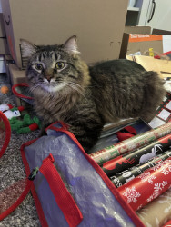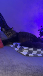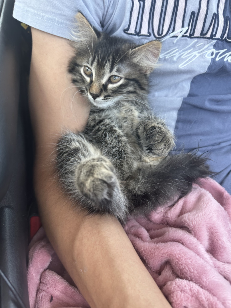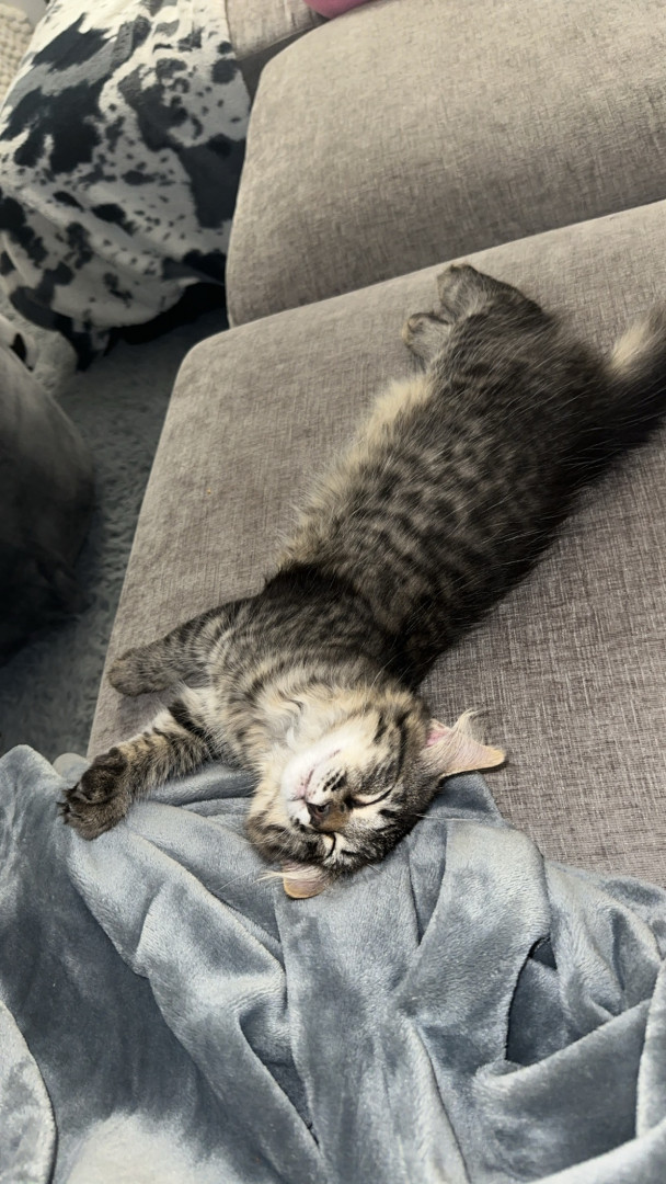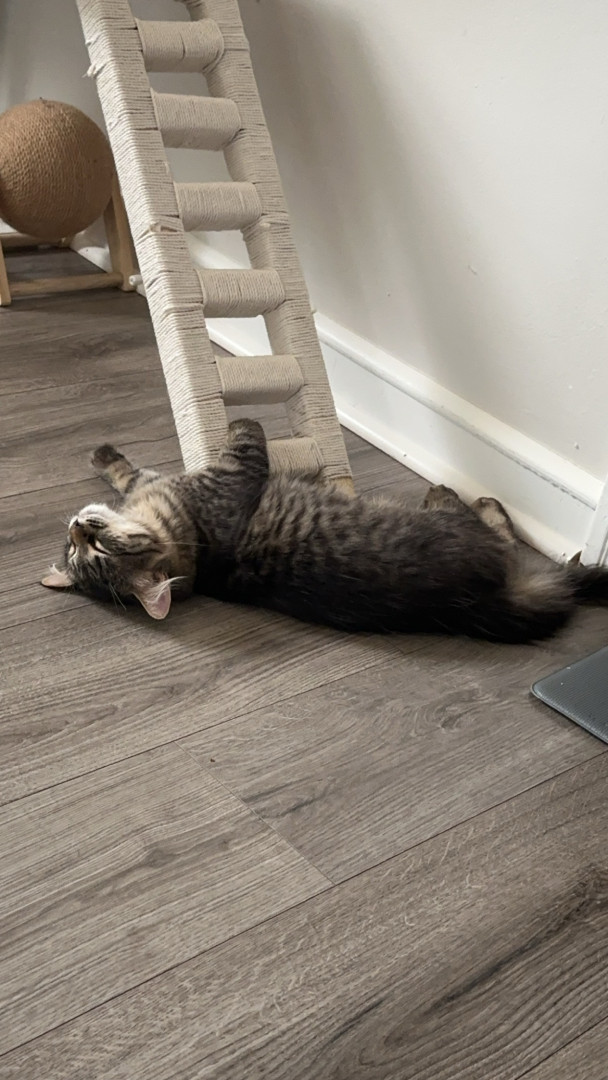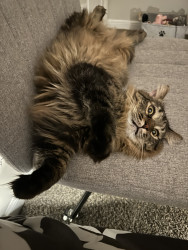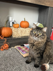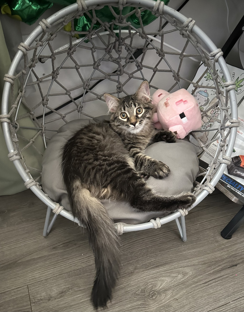 Cosmo is a grey and black fluff ball