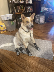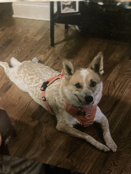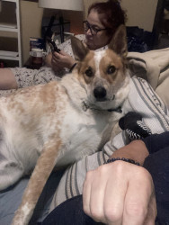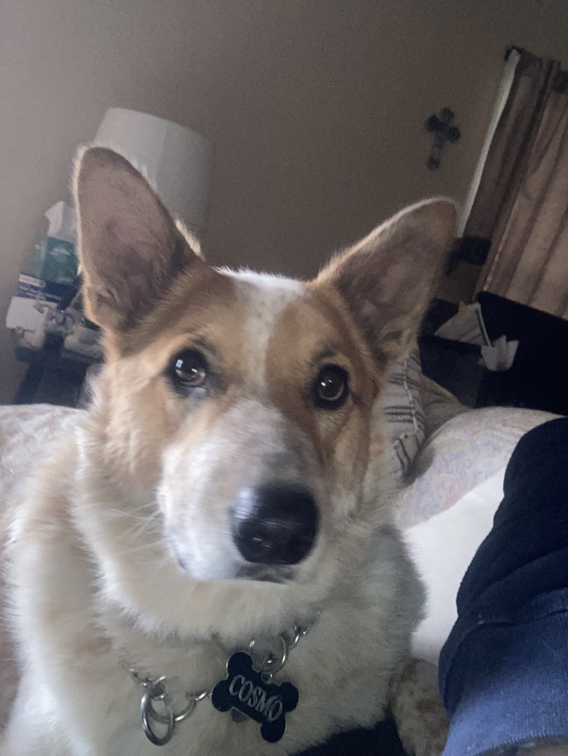 E has very unique qualities that are a big part of our family health wise and he is a very big part of our life’s ever since we adopted him from a shelter when he was 2 months old someone tossed him out on the side of road when they found him and that same day we so him and we can clearly say that he picked us to be his parents. He’s an Australian Red healer mix with German shepherd and Malamute. Love our baby Cosmo.