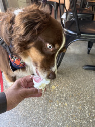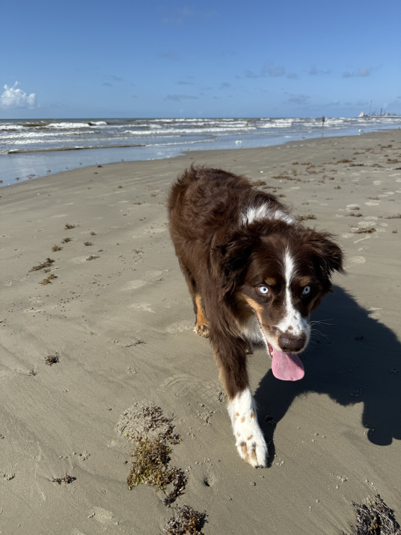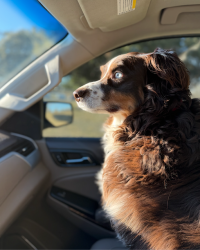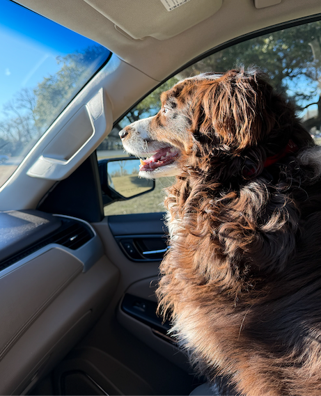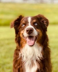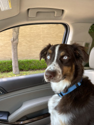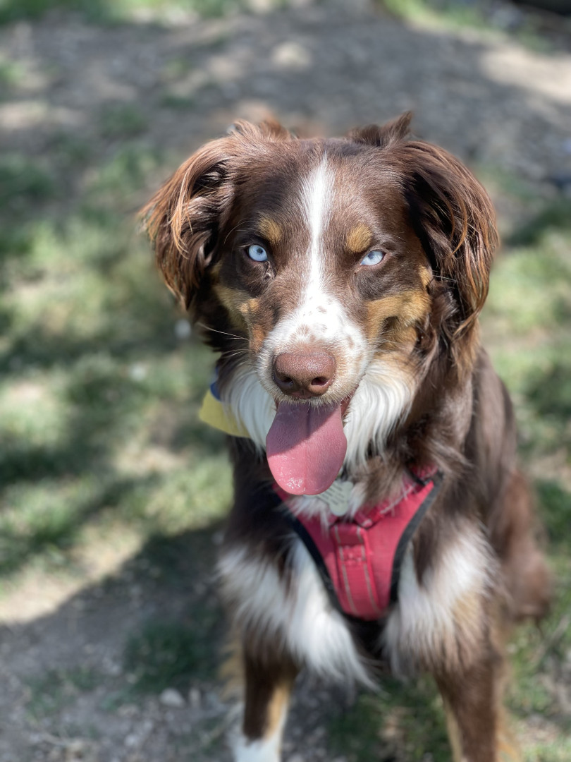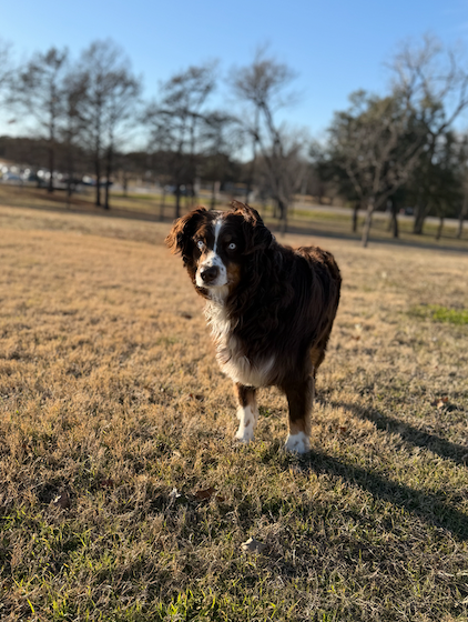 Meet Cosmo! A 5-year-old Aussie powered by car rides, long walks, big adventures, and a mission to make everyone smile.
