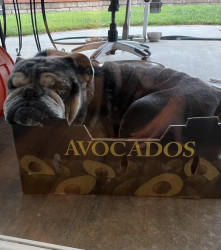 Cosmos is very loving, grumpy. Very playful and loves his little brother and Mom and dad, and he loves to sleep in Costco boxes.