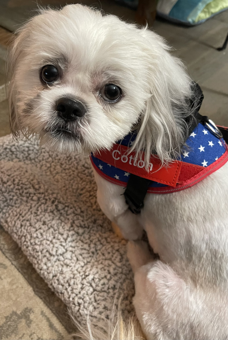 Cotton, my 4 year old ShiTzu, is smart, energetic, fun loving, fur-ball of love. Cotton loves opening gifts, playing, and belly rubs.