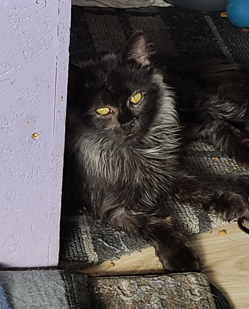Trucking kitty road around the country. Black with silver tip main . Sweet loving baby.