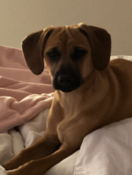 This is cowboy he is a year old. He loves his humans and is in training to be a service dog.