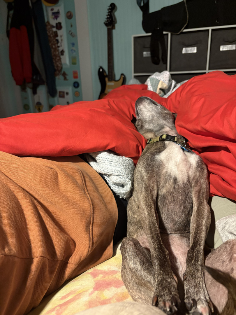 She’s imperfect in the perfect ways. She’s nutty but sweet, she’s a rescue, she lost 23 teeth this year (breath is substantially better), she sleeps under blankets and is very excited to see any human. She will lick your salty body. She licks my neighbors feet and used to lick my dad’s bald head. We need more unique imperfect celebrities.