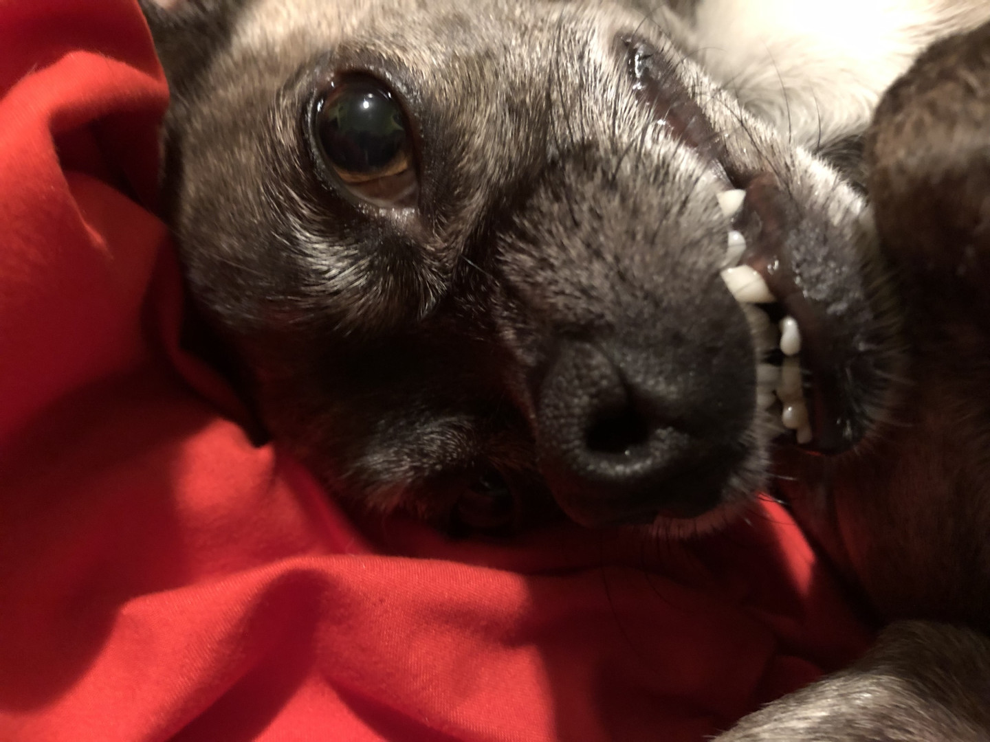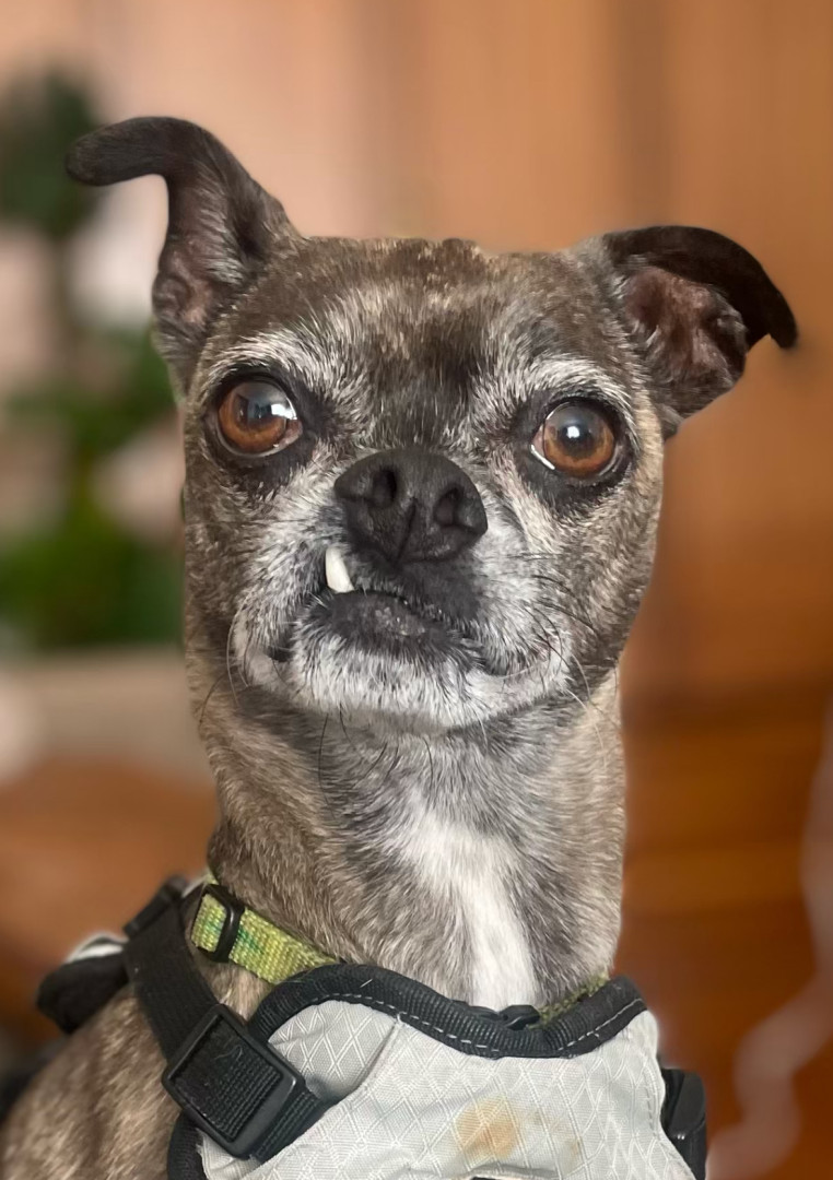 Crazy, half teeth gone, 10 lbs, half chihuahua and pug “chug”