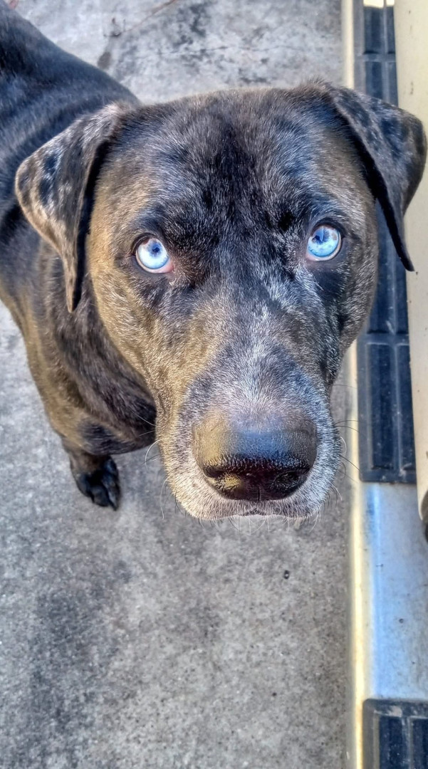 He is a big boy but very gentle and kind. His most unique feature are his blue eyes.