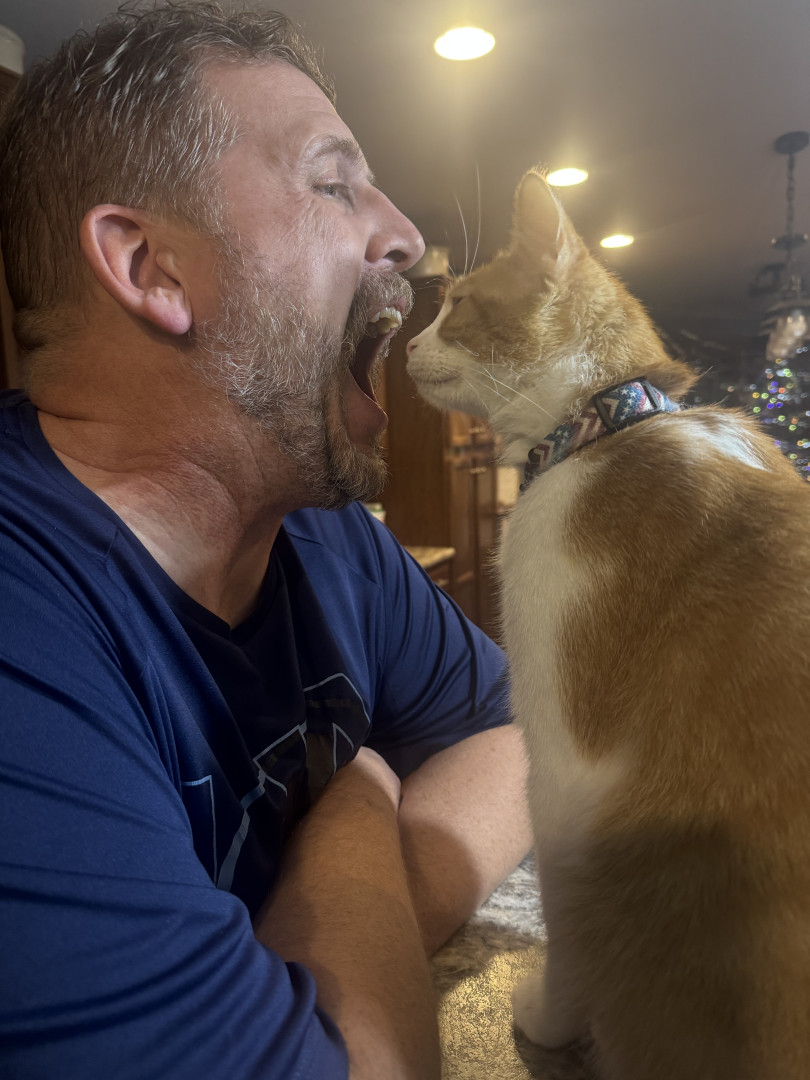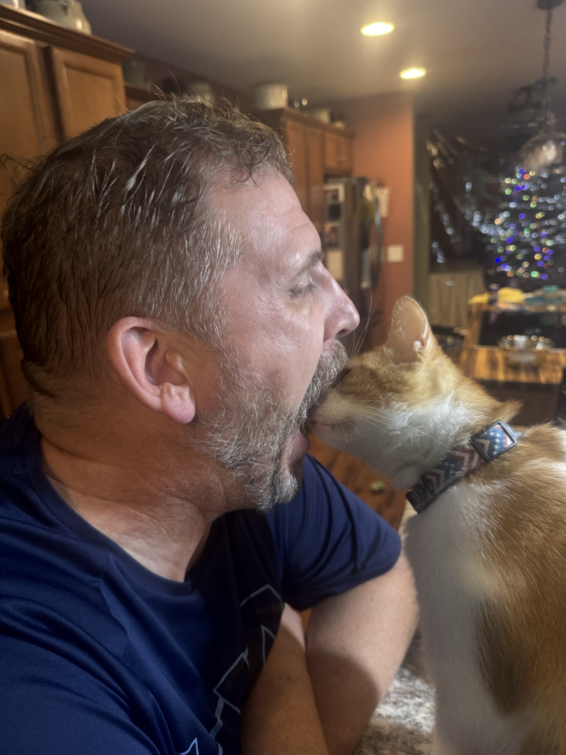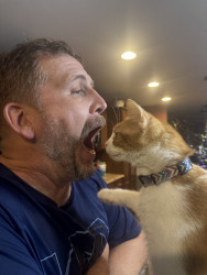 Empathetic - always there to give love no matter if you’re upset or happy. At night he wants to be curled up under the blankets but right by your face. He likes to sit at the counter with you while you eat so you aren’t alone and he patiently waits for a bite or two with his tongue out. Sometimes he will creep over and stick his head in your mouth to investigate what you are eating.