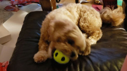 Well his raccon is ragged and his green grenade isn't the bomb!! Definitely his ball is the favorite! Crosby's go to treats consist of baby carrots, celery sticks, peppers and melon 😊