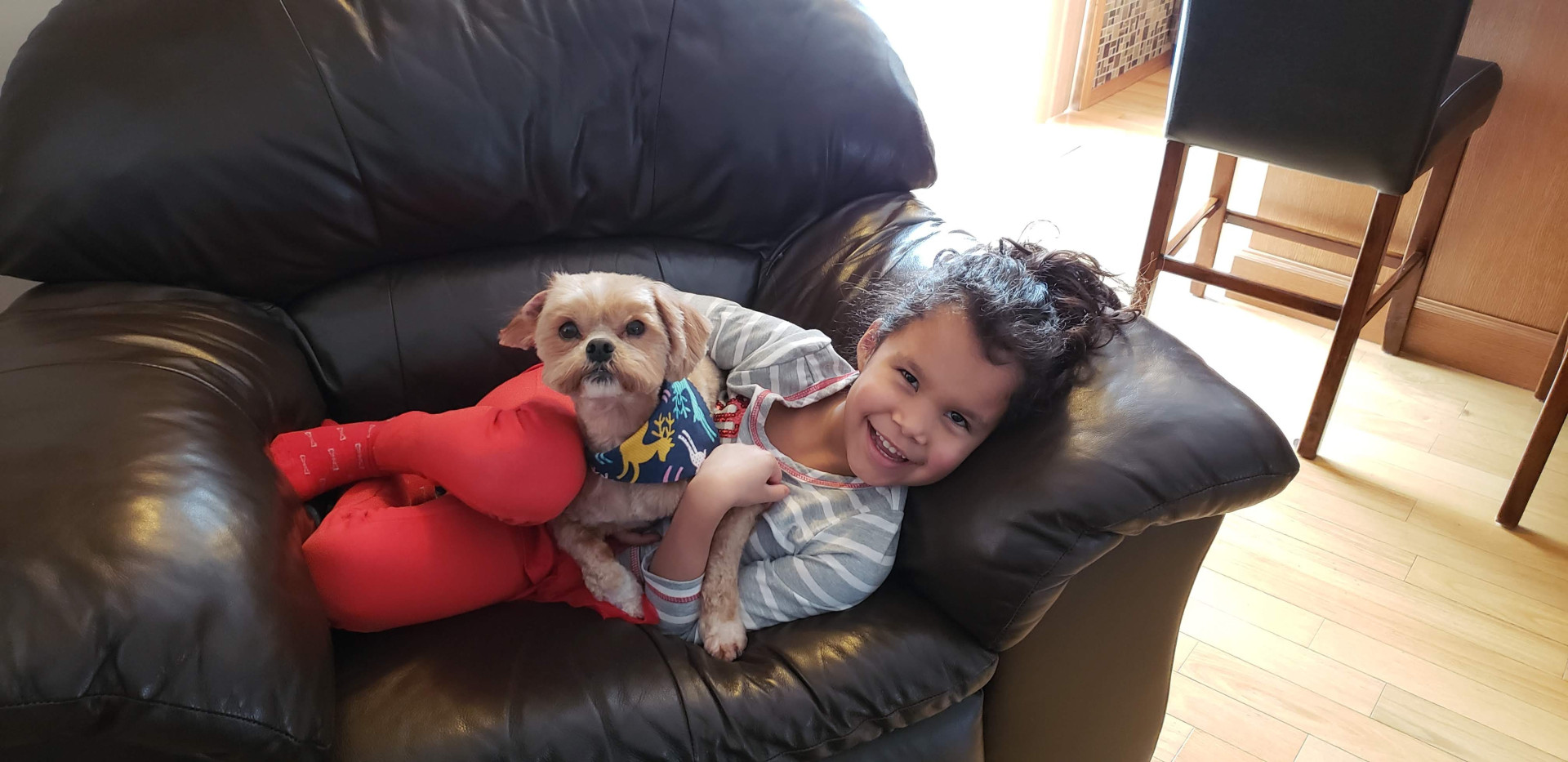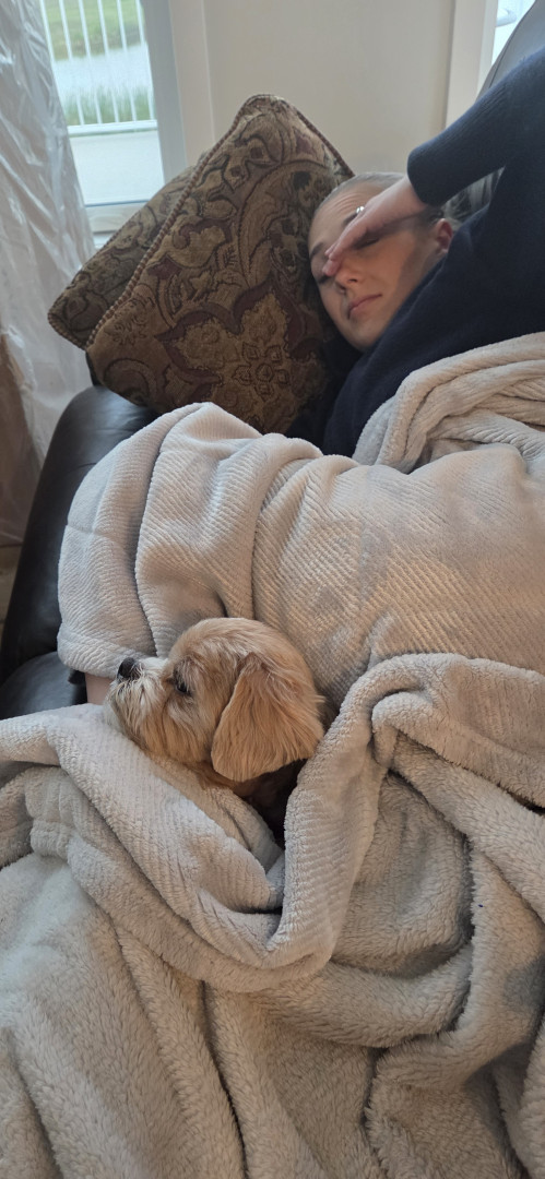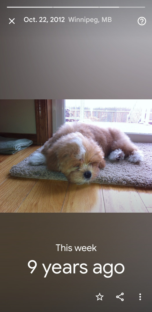 When my mom passed away suddenly, life felt very different, difficult at times. My mom, also the ultimate grandmother "Nanny" the kids called her, were young; 6 & 7yrs.old when this sudden passing took us for a loop and I felt the need to "mother" missing that bond I had with my mom. So here came Crosby all the way from Saskatchewan!! A very healing and loving dog. I believe he's a little piece of heaven ✨️ sent to us to help us cope with the devastating loss. We love him!