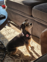 Curie's a beautiful little girl both inside and out. She's loyal, protective, and loving, with me, my husband, and her little Chihuahua brother, Hudson. She's always on guard, always there to comfort, and always shows us how much she loves her family. It would be nice for others to know her wonderful spirit.