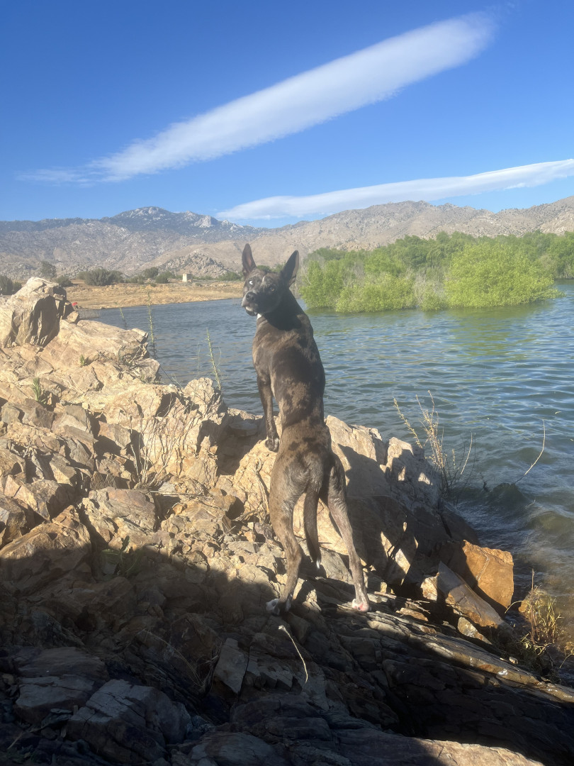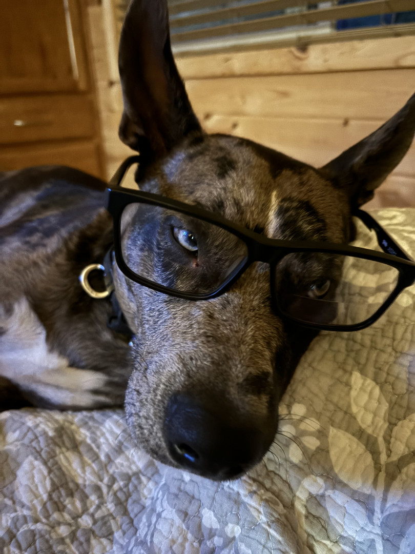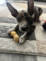 Cyprus is a catahula leopard mix with one blue eye/one brown. Full of energy, he loves to go fishing/hiking/walking & playing ball
