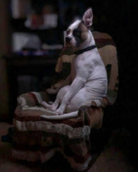 He’s a bit of a trickster!! He doesn’t like sitting on the ground. He loves being in a chair. He will try to fake me out so he can get into my chair all the time. He will bark like someone is at the door and wait until I’m far enough away from it so he can get into my spot.