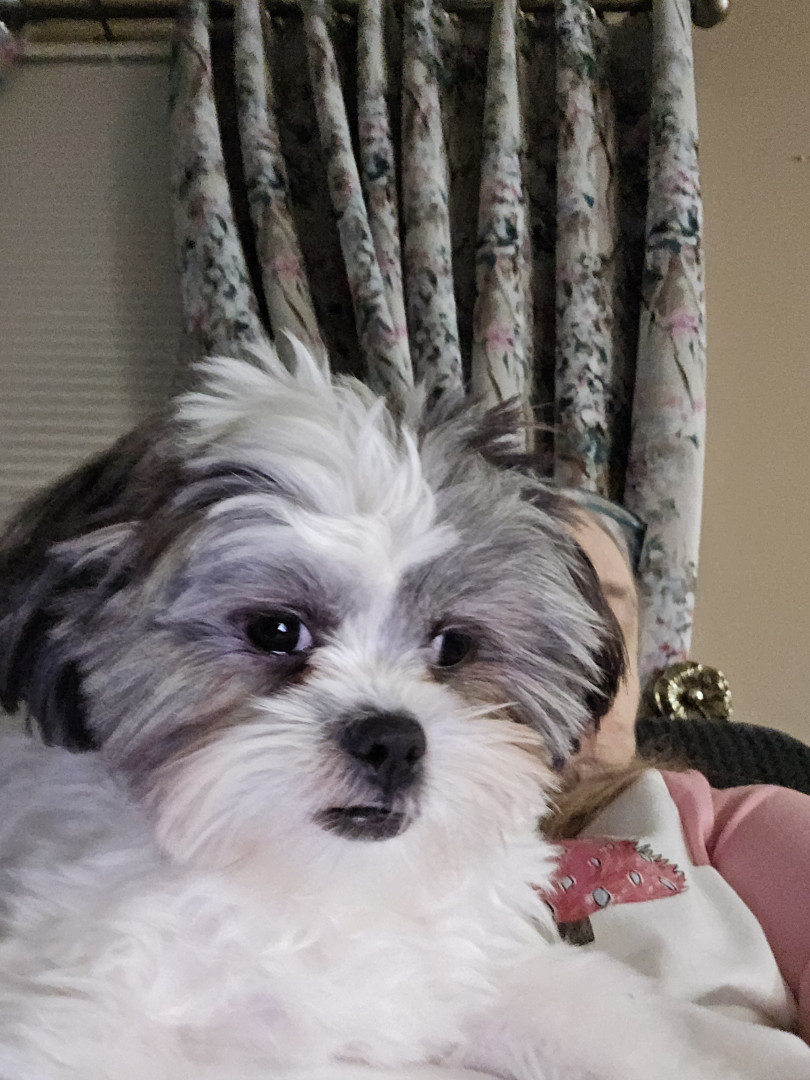 She very loving.When wants attention she looks at you with big eyes n makes sound like a whine.