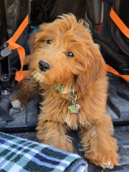 Daisy is a micro goldendoodle from Missouri. She is 10 months old, she is full fun and love, and always up for adventures.