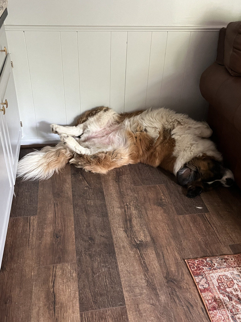 Daisy Mae is the most lovable and happy pup. She’s 7 yrs old, weighs 160# and absolutely loves people all for belly rubs. 🌼