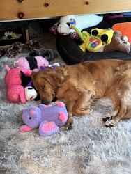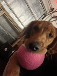 Receive Text UpdatesDaisy favorite toy would have to be a ball, she loves to catch them in the air. Go to treat would have to be chicken jerky wrapped beef hide bones, she plays hard to get when you give it to her, it’s adorable to watch.