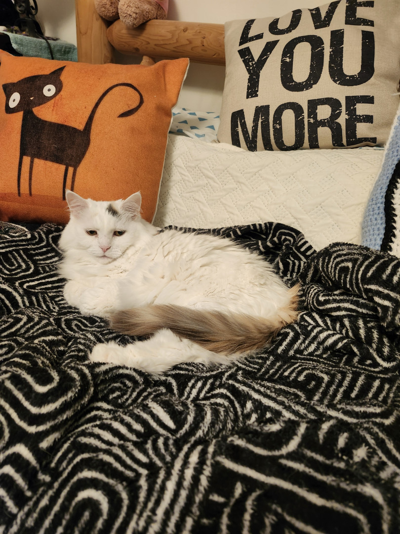 Daisy Mae let's me know when she wants loving. She sleeps with me and let's me know when bedtime is