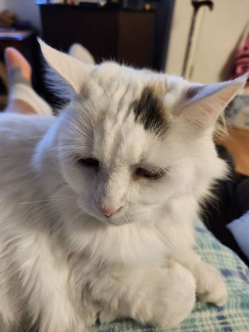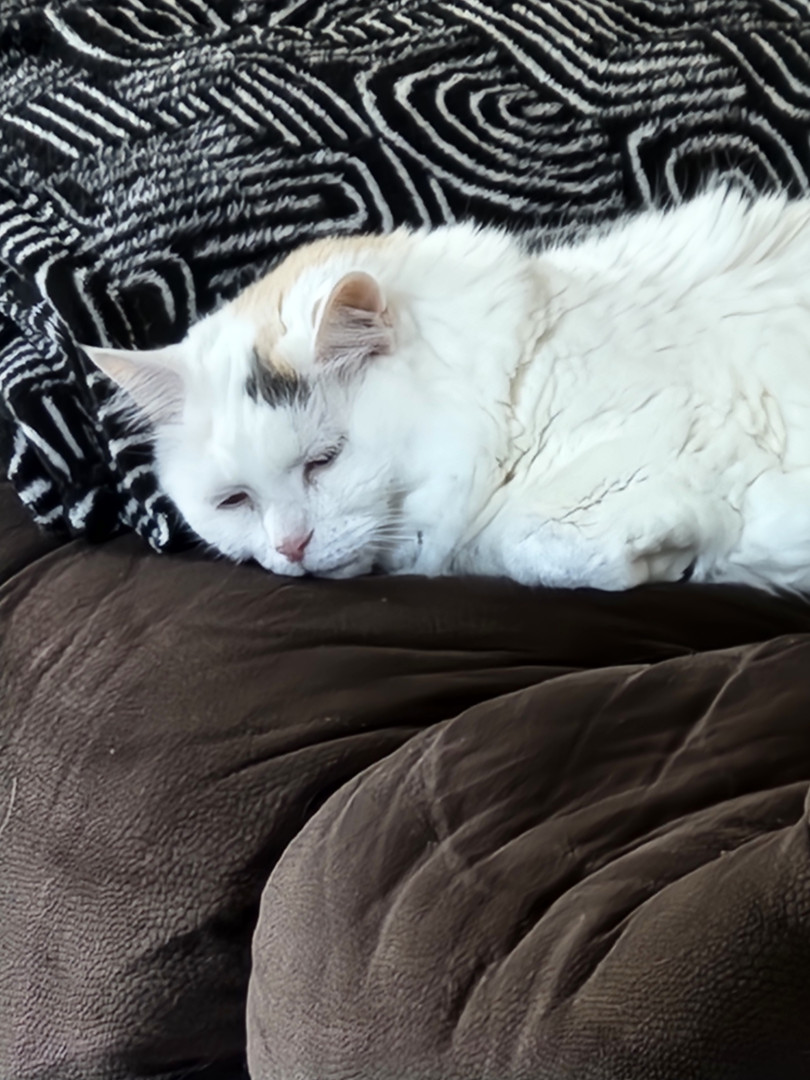 Daisy Mae is 15 years old and she loves getting brushed out every morning. Daisy Mae loves attention and her treats.