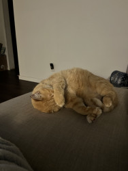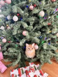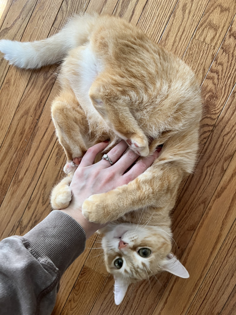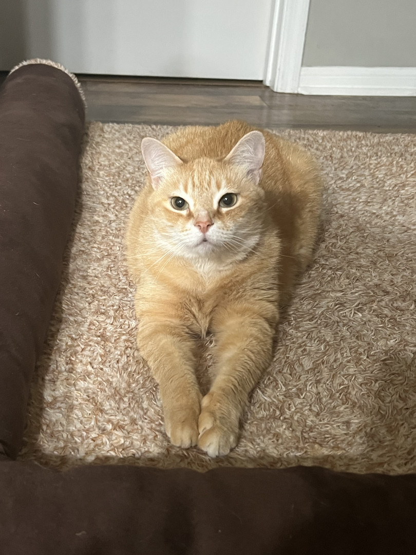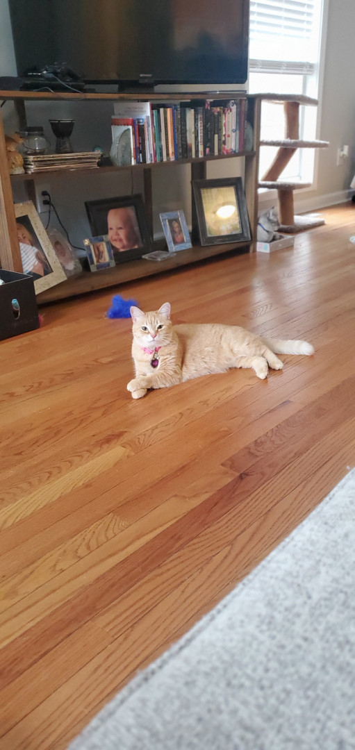 Daisy is the definition of “orange cat” but she is so pretty and loves to pose for the camera. Her favorite toy is a feather!