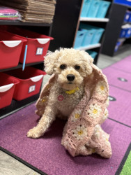 Daisy is a 2 year old Schnoodle that loves people. She goes to kindergarten class with her owner and loves to play ball.