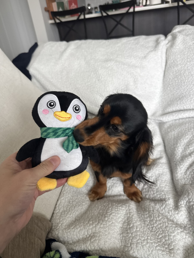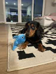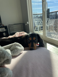 Daisy is the SWEETEST, most loving, and cuddly mini dachshund. She is 8 months old and loves her stuffed animals (especially octopus)!