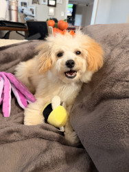 Her unique quality is to show her 85lbs brother that she is boss and he completely agrees . Now that is a female for you !