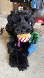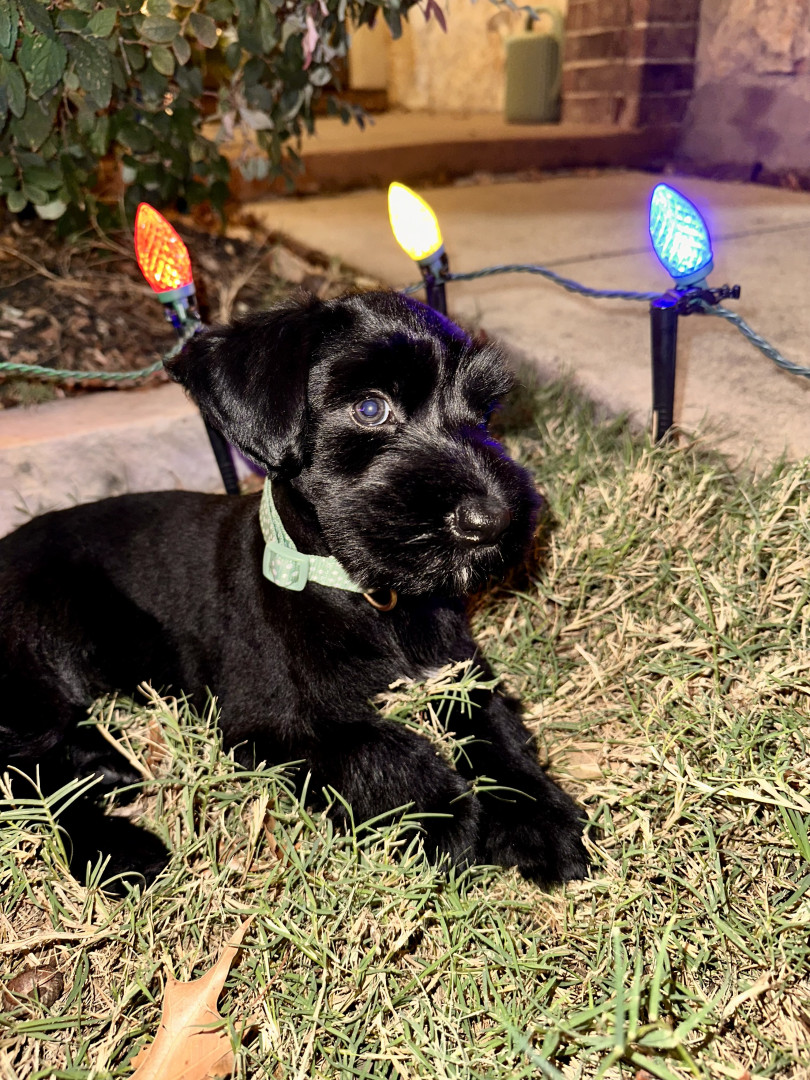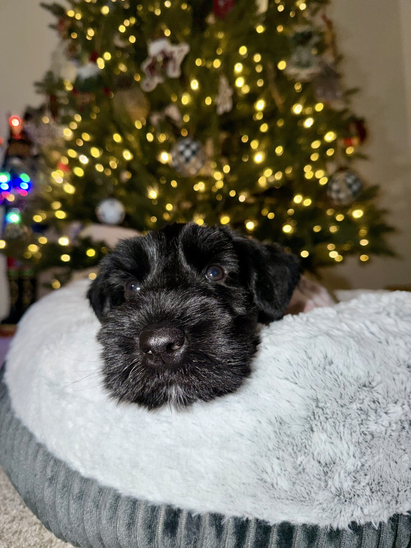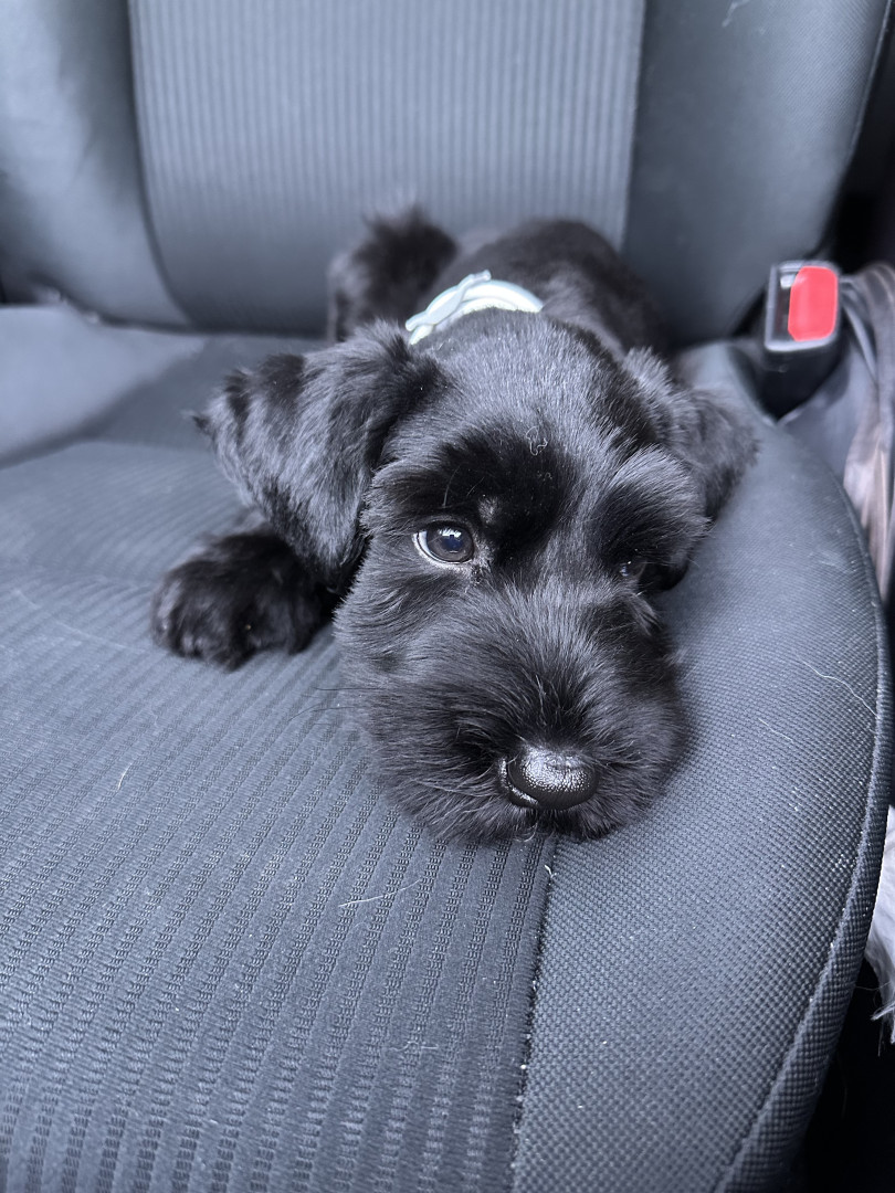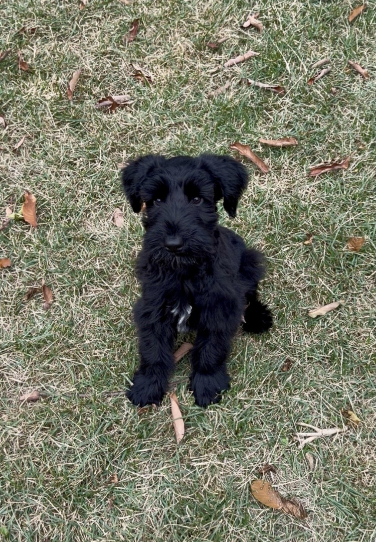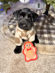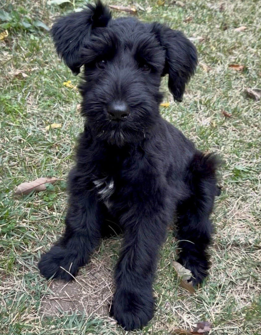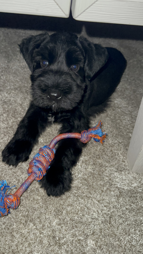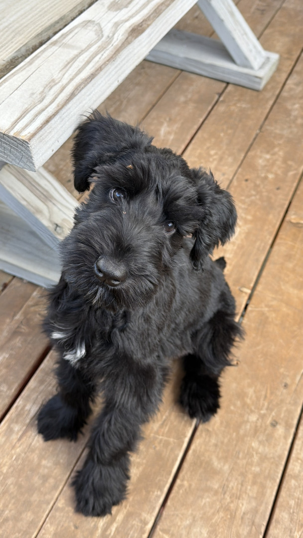Daisy is a feisty little giant schnauzer with playful love bites, bold curiosity, and a heart much bigger than her paws.