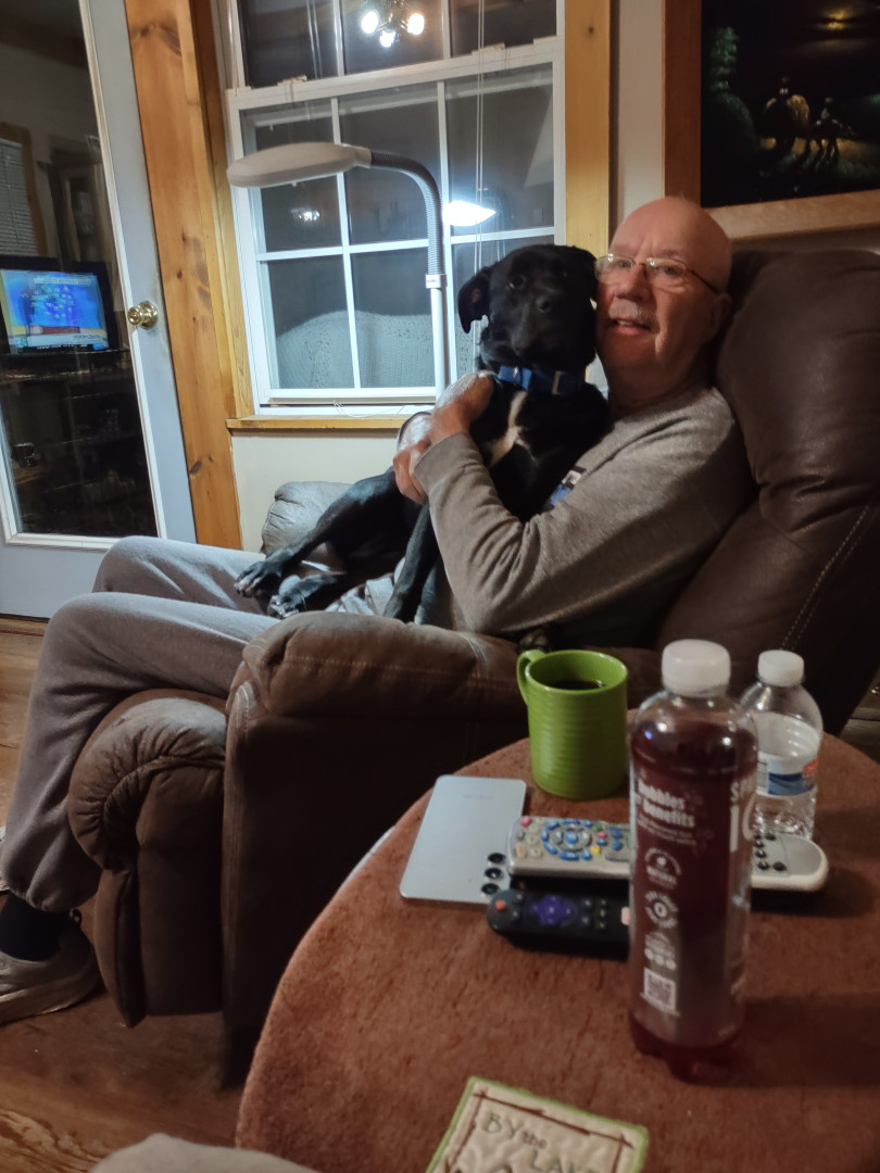 She is a English Lab. She has a block head. She has lighting strike on her Chest.