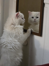 She seems to sense her human dad's emotions and loves to wash his goatee and snuggle with him. Daisy came to live with us right before Pete's mom passed away and she bonded with him almost immediately.