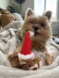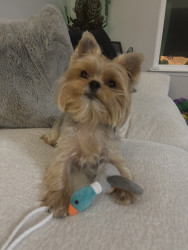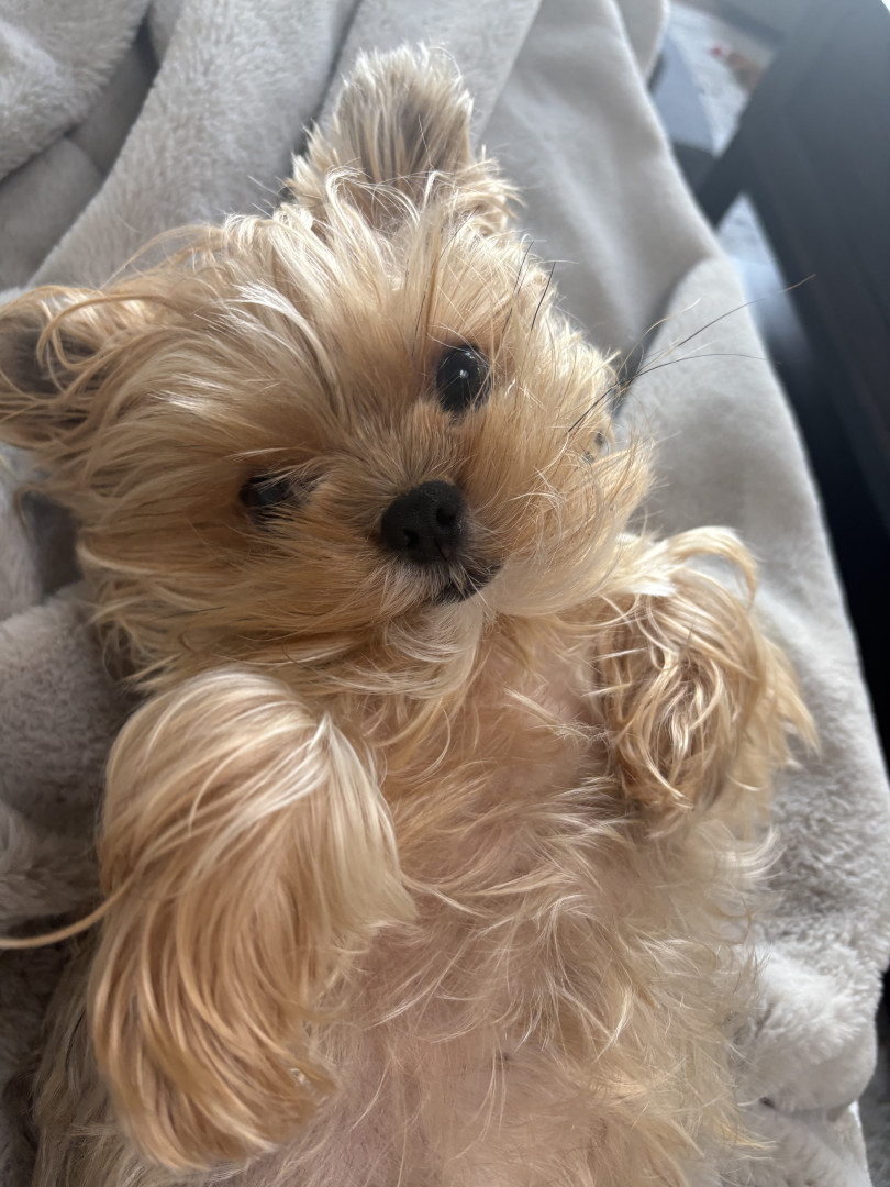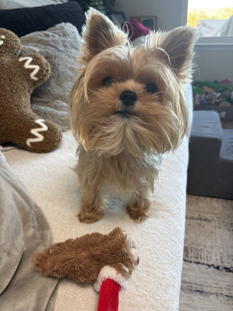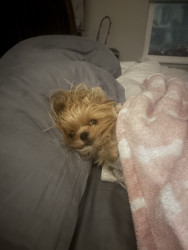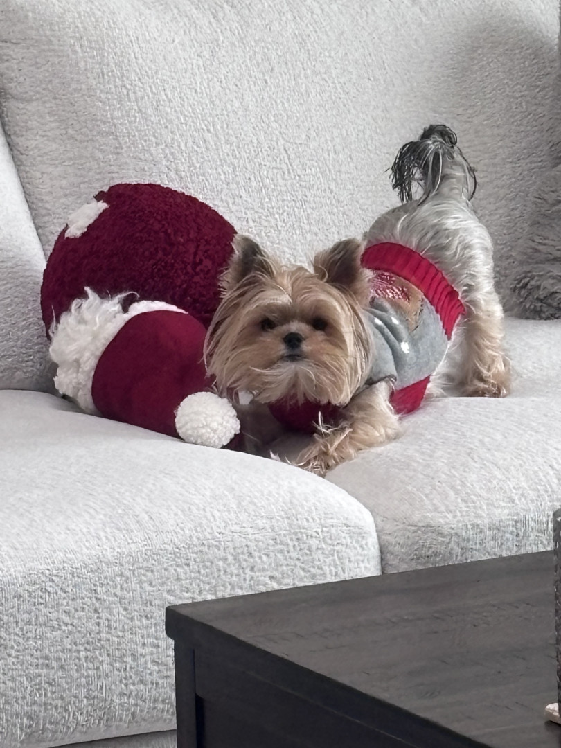 She is the most loving little dog!! Her hugs are the best and she’s very sweet and loves everyone. I have never seen a cuter little Yorkie and love her so much!!!