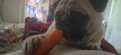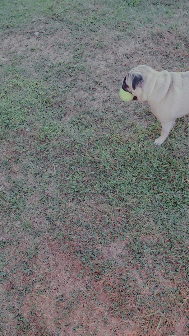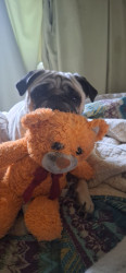 Daisy is unlike my other 2 previous pugs, she loves to play catch, run in the woods and plays well with any animal or human!!